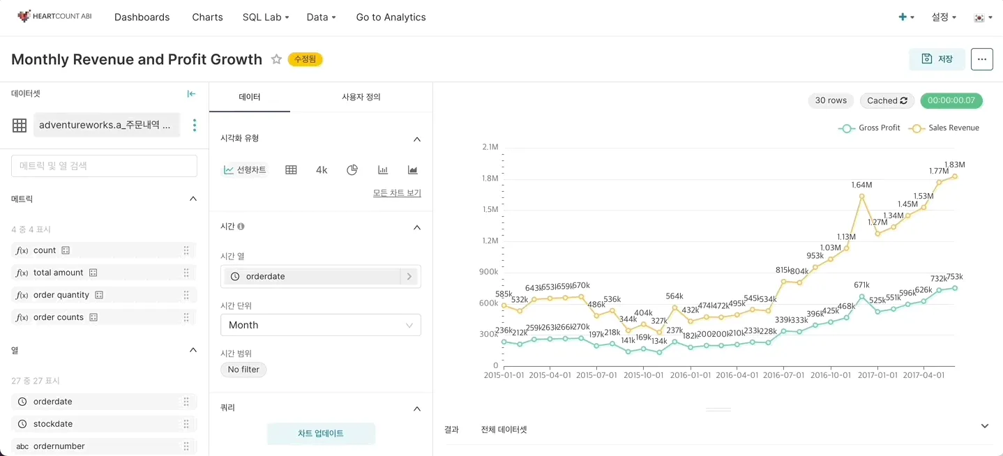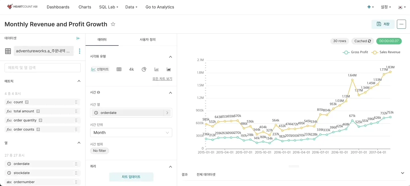 예를 들어 아래와 같이 날짜 단위를 month, ROLLING 함수를 mean, 기간을 3으로 설정하면