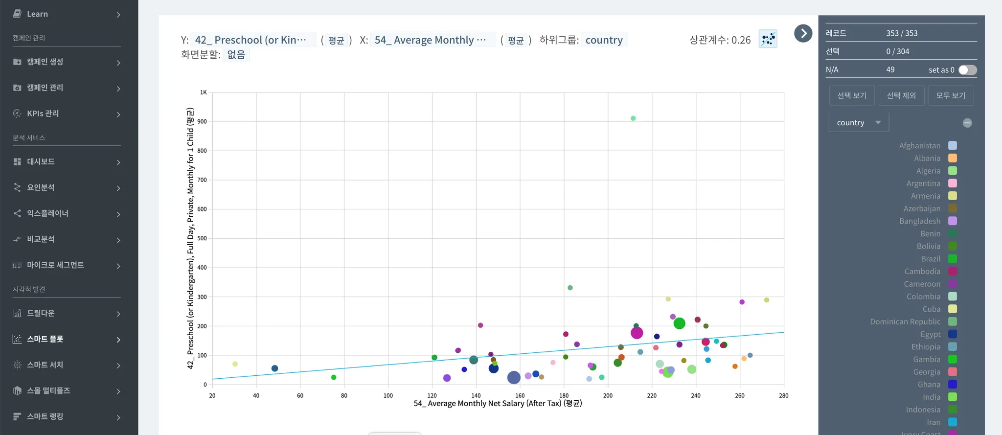 즉, GDP는 낮지만 국가의 교육 관련 복지가 잘 되어 있거나 주변국가의 도움이 있는 경우 유치원 비용이 적게 들었음
