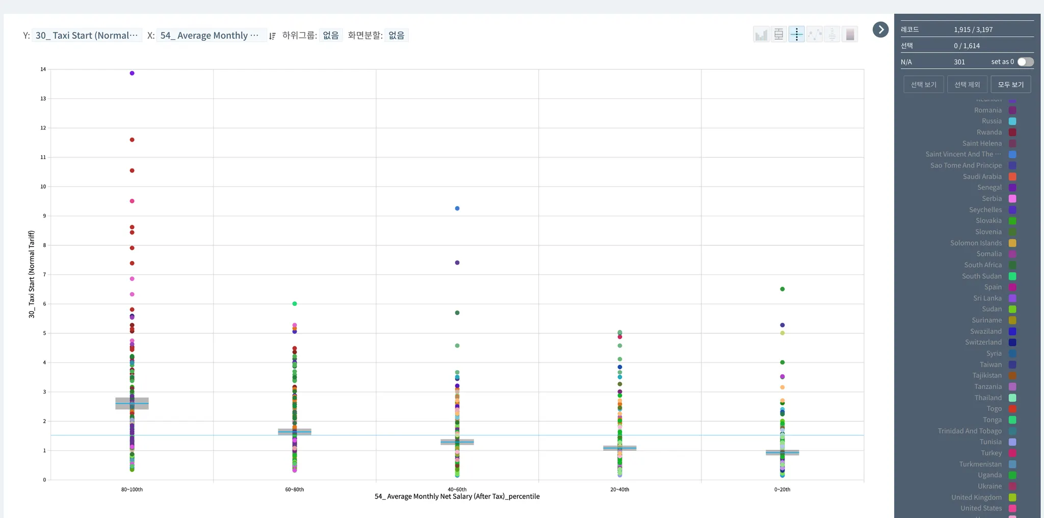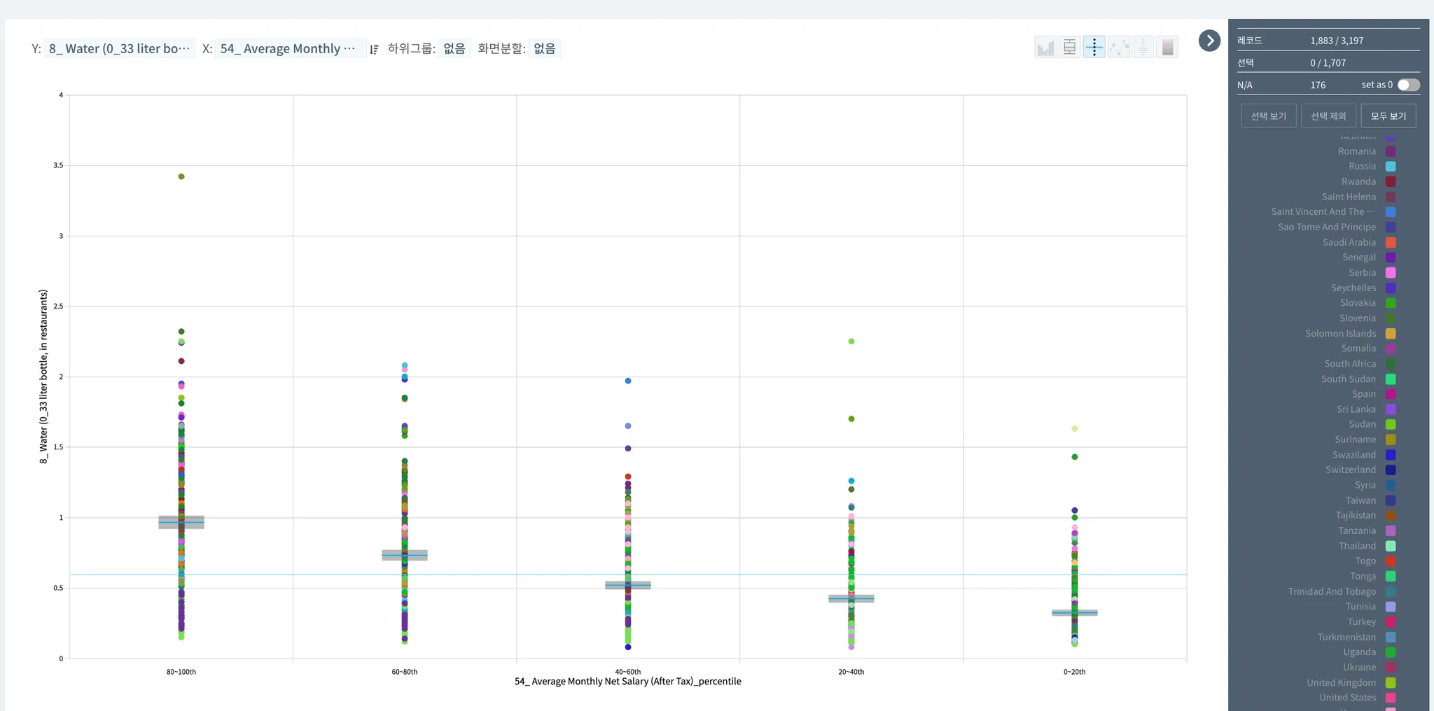 > 임금은 낮은데 유난히 물이 비싼 국가는 다 남미 혹은 인근에 속한 국가였음
