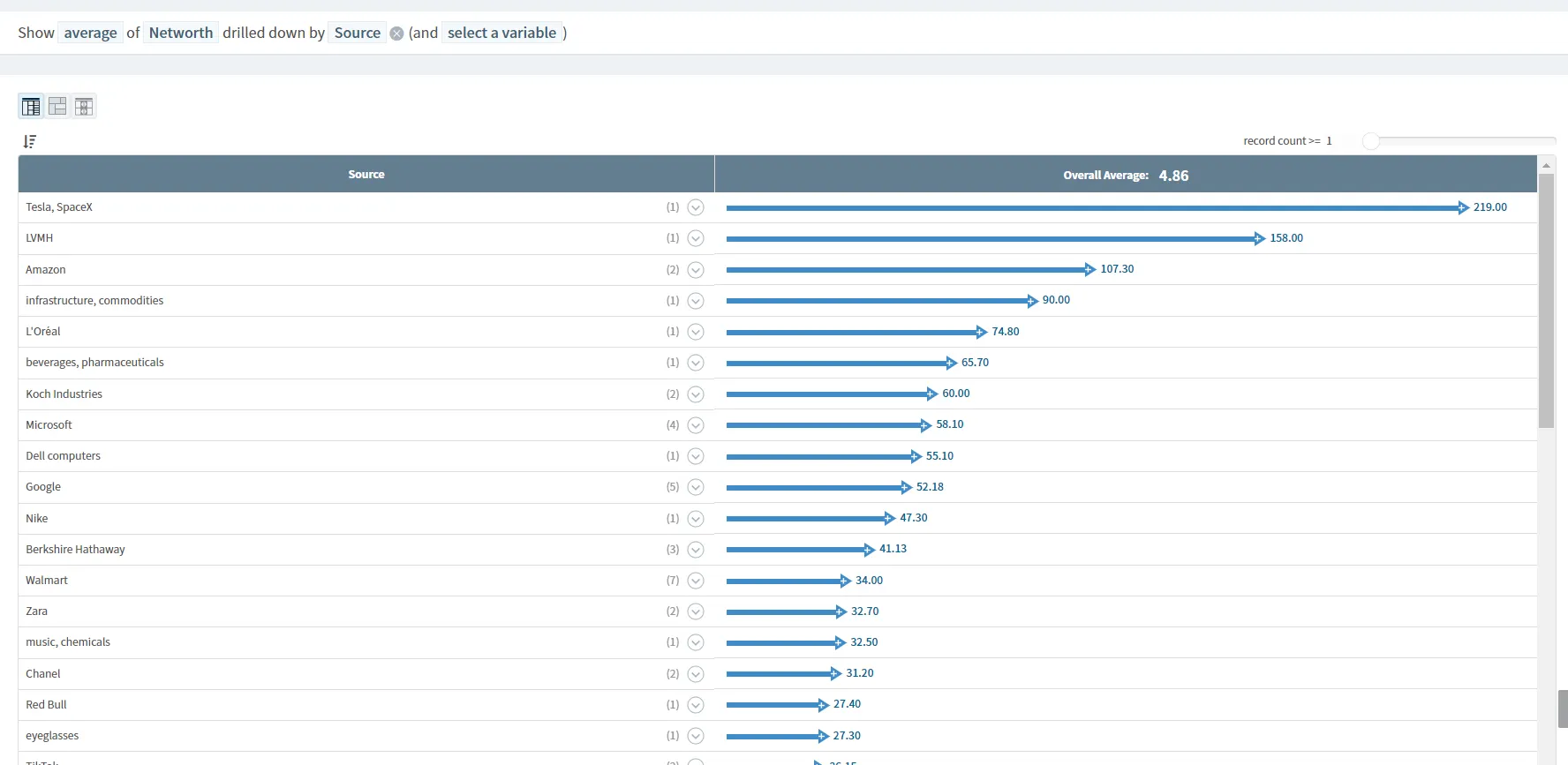 순자산이 가장 많은 백만장자의 재산 출처는 tesla, spaceX였고, 2위는 LVMH(모엣 헤네시·루이 비통)이었고, 3위는 Amazon이었다.