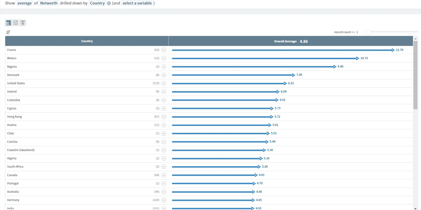 기본적인 데이터셋 정보로는 파악하기 어려웠던 정보를 데이터분석을 통해 알 수 있었다. 겉으로 보기에는 미국과 중국에서 백만장자가 많이 나왔기 때문에 미국과 중국의 백만장자들의 순자산이 더 많을 것으로 예상했다. 하지만 순자산으로 보았을 때는 프랑스, 멕시코, 나이지리아의 순이었다. 특히 중국의 경우, 순자산 10권에 속하지 않은 것으로 보아 순위가 낮은 백만장자가 많은 것 같다.