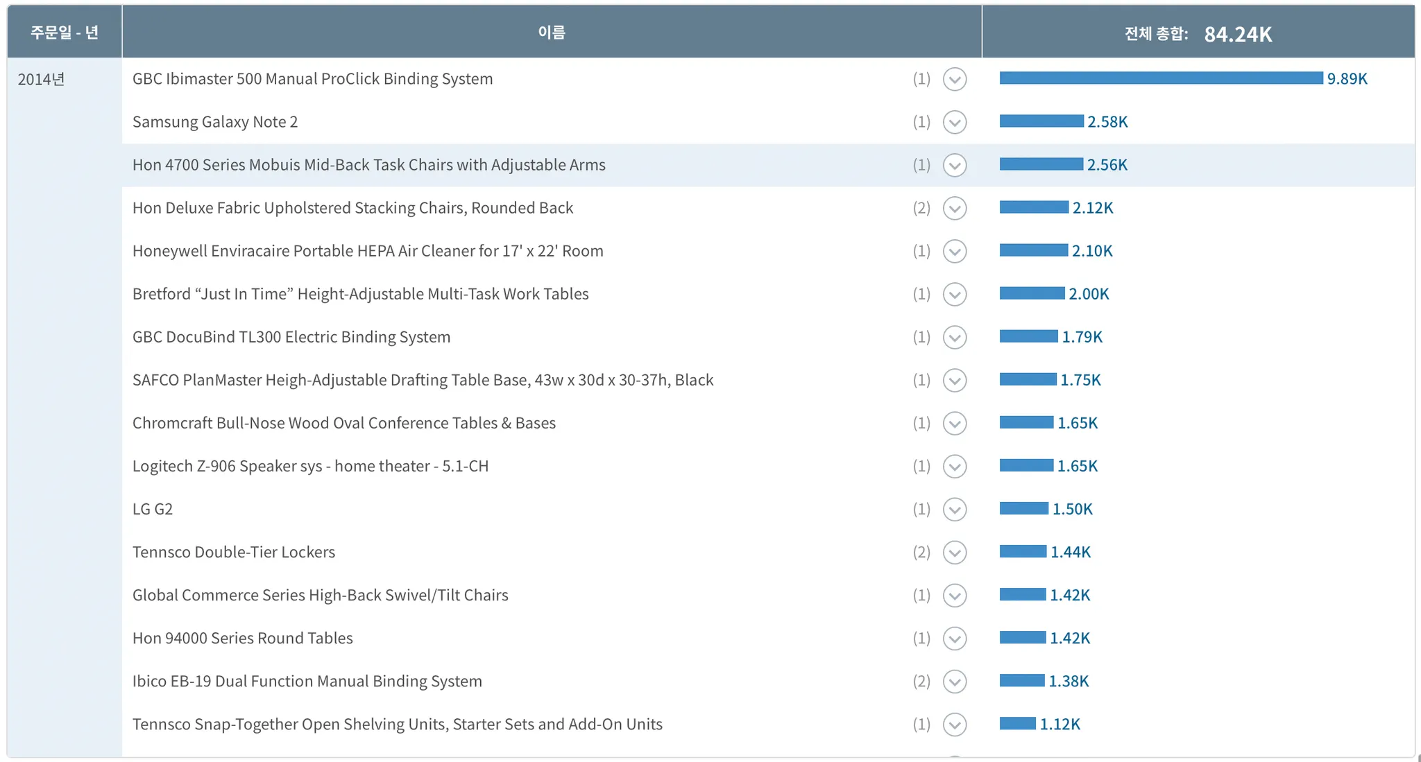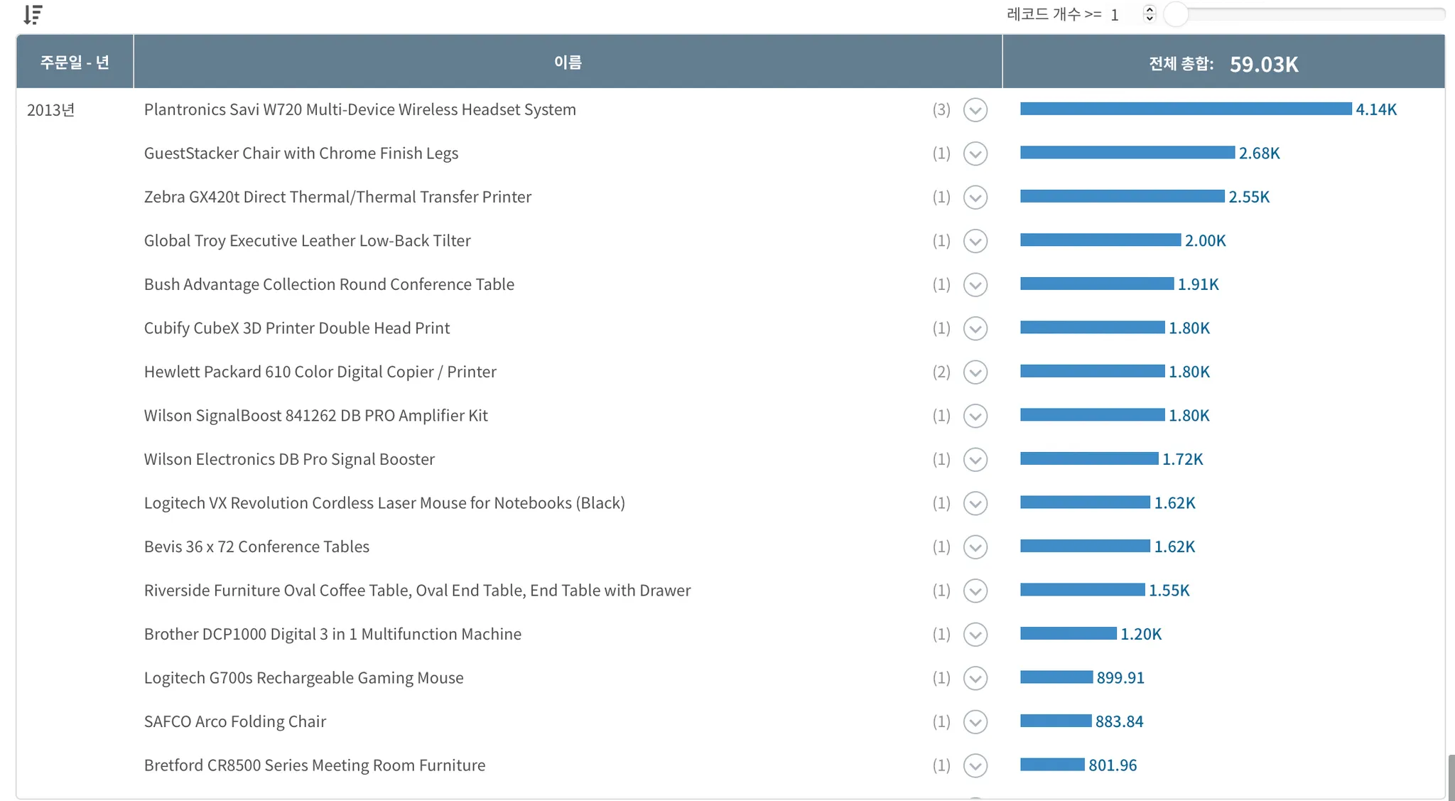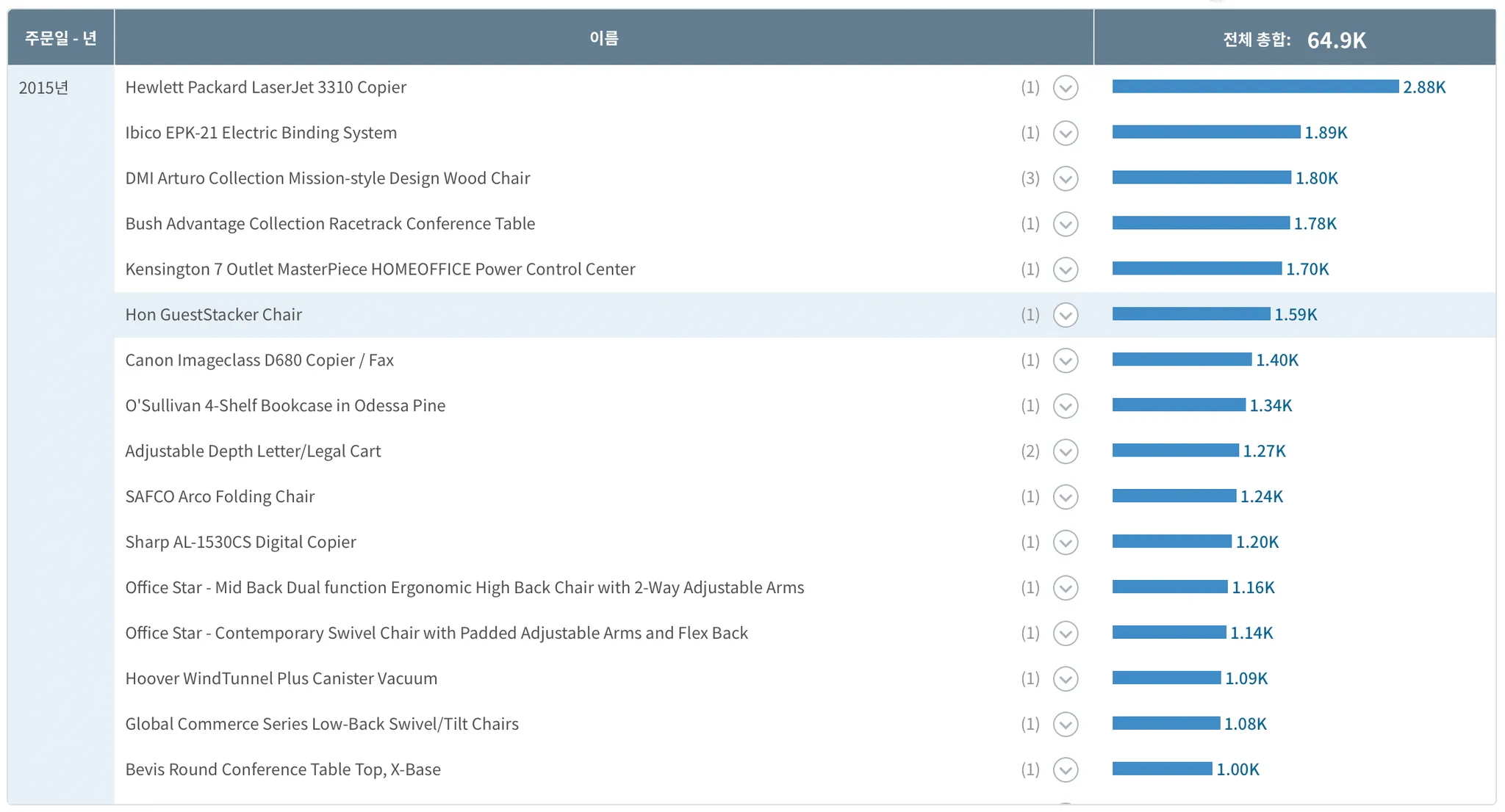 전체 판매 내역 중, 매년 12월 매출 Top10 중 겹치는 상품이 없음을 확인.