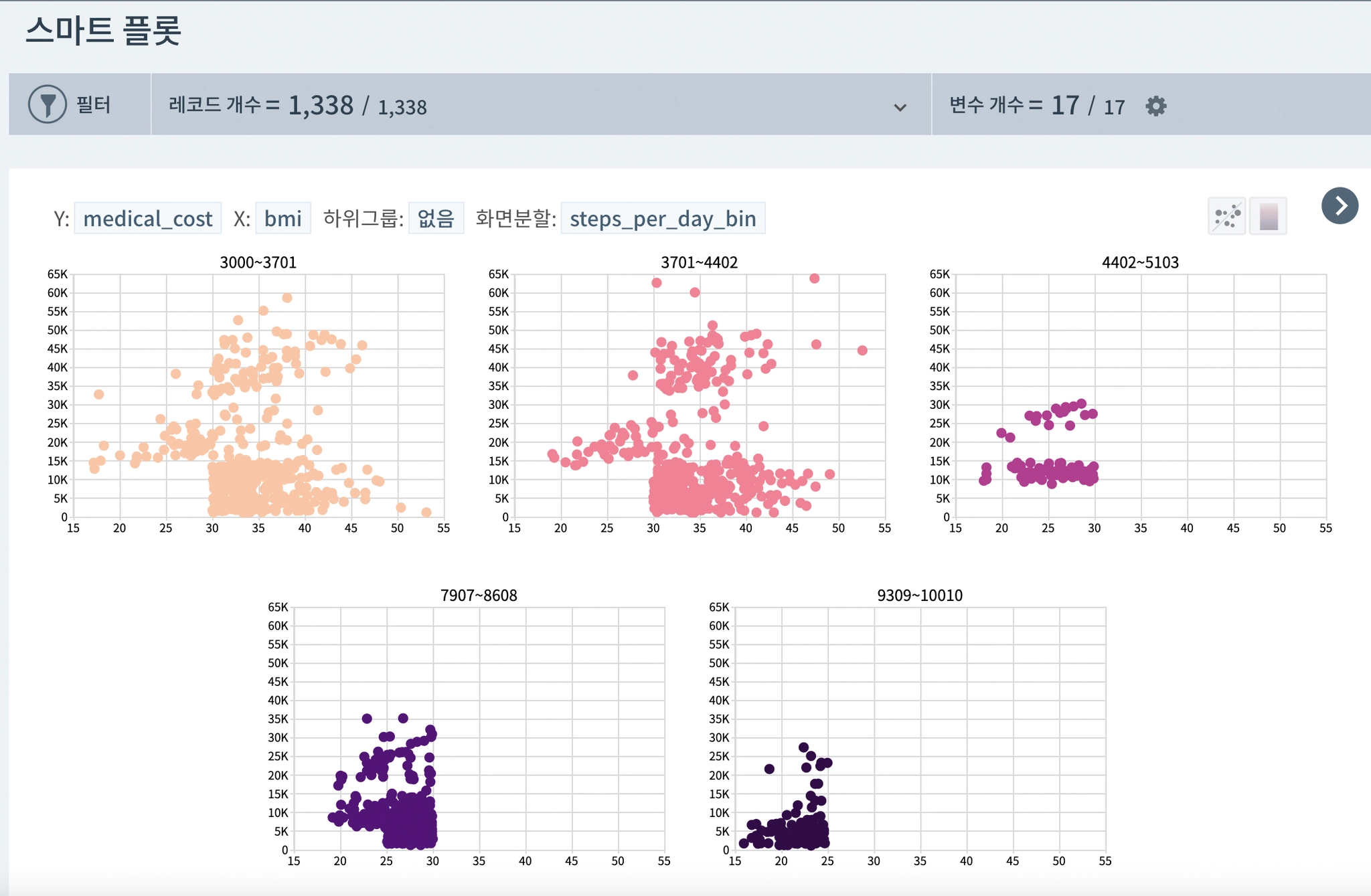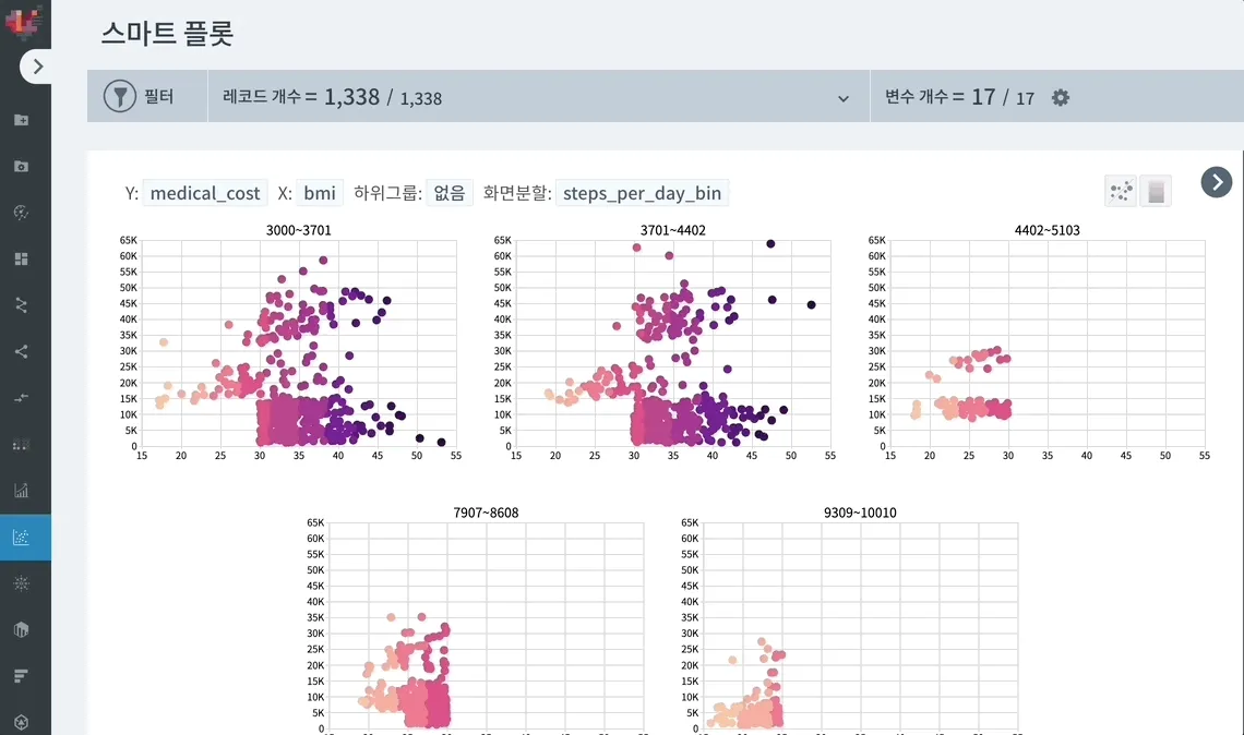 하위그룹과 화면분할 기능을 통해, 데이터셋을 더 종합적이고 정돈된 모습으로 2차원 그래프상에 표현할 수 있습니다.
