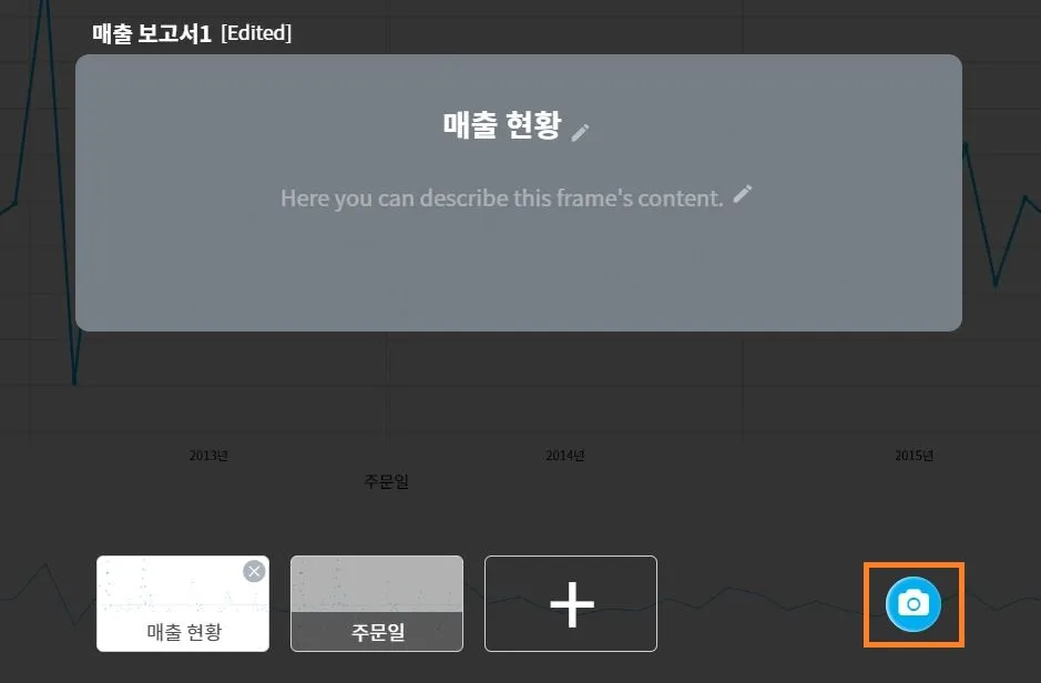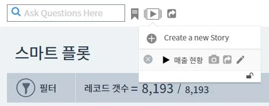 스토리와 일치하는 시각화 플롯이 있다면 하단의 카메라 아이콘을 클릭해 시각화 화면을 캡쳐할 수 있습니다.