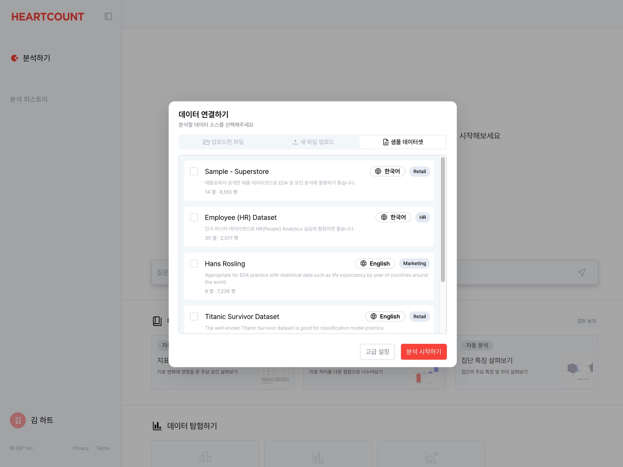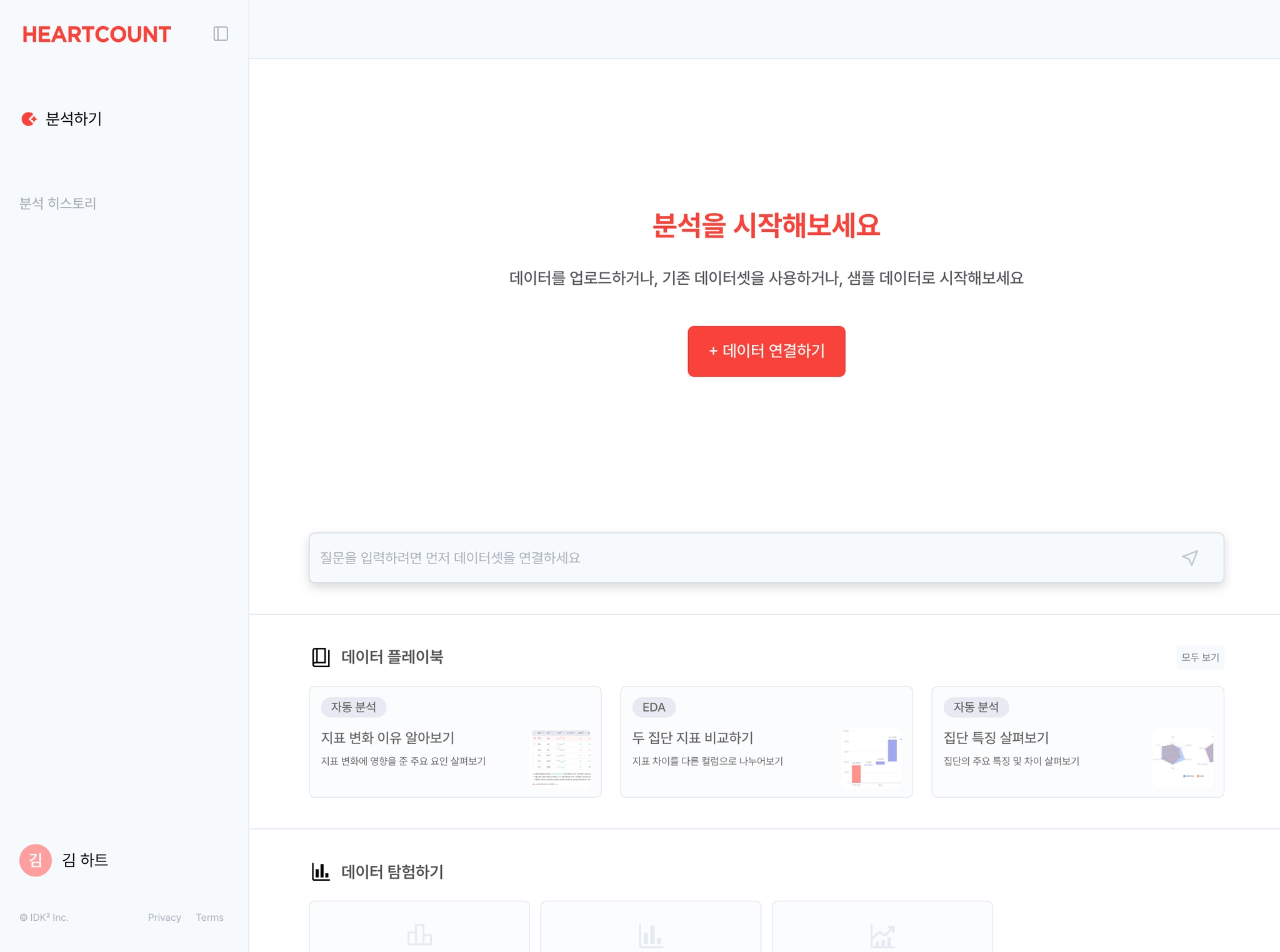 HEARTCOUNT 사용을 이제 막 시작하신 모든 분들 진심으로 반갑습니다! 이 글은 초심자분들을 위한 길잡이 가이드입니다. 데이터를 연결하고, AI 데이터 분석과 데이터 시각화를 시작하는 법을 알려드립니다.
