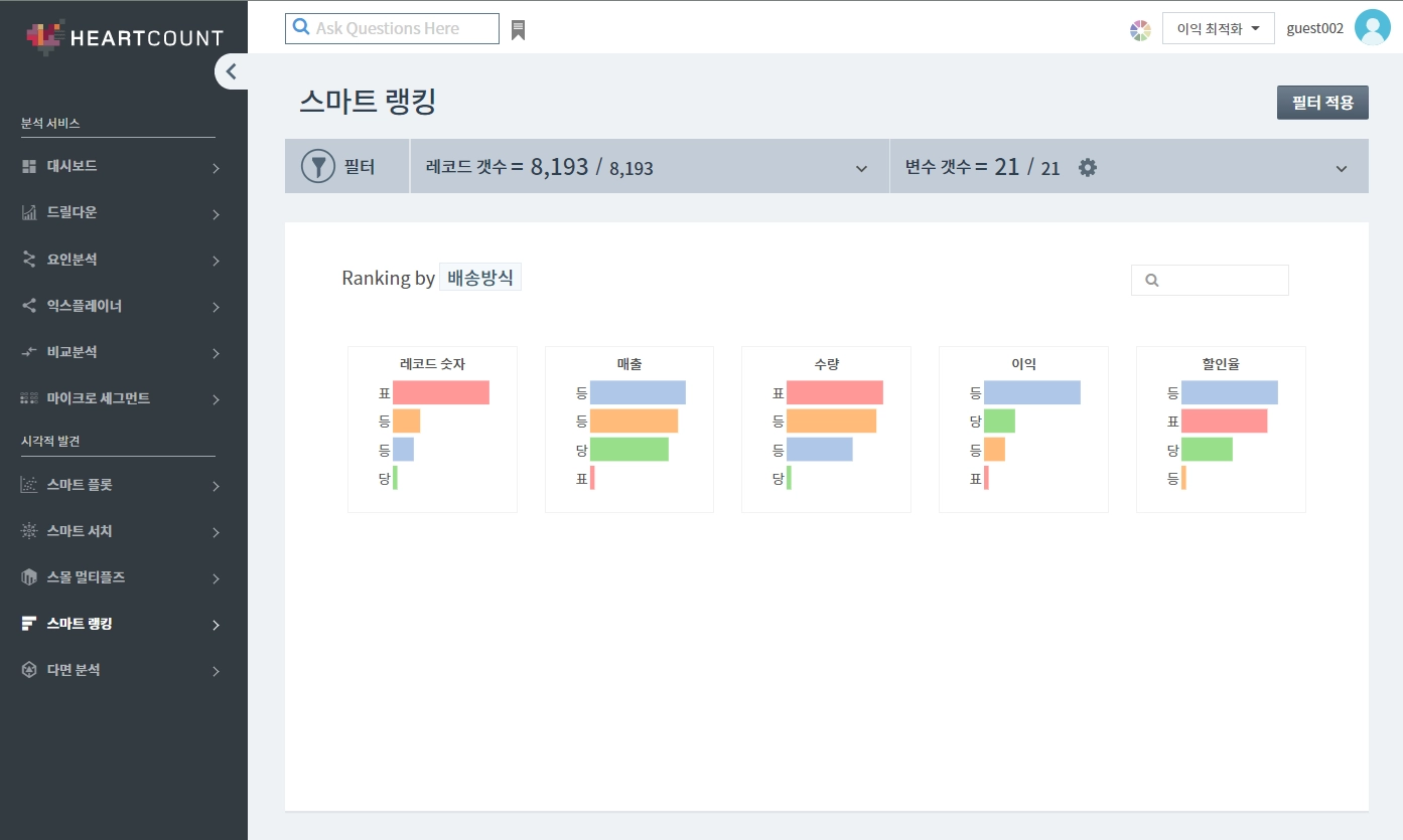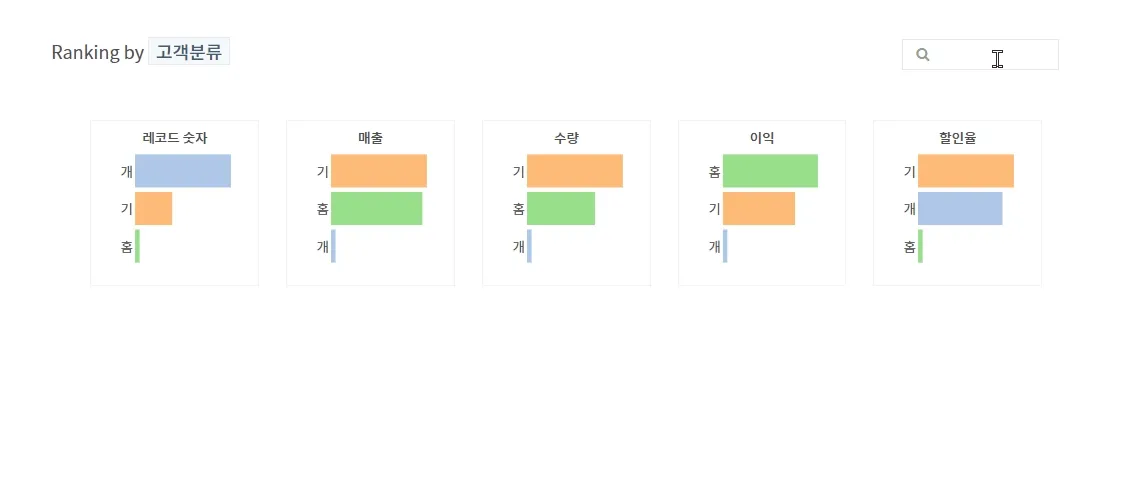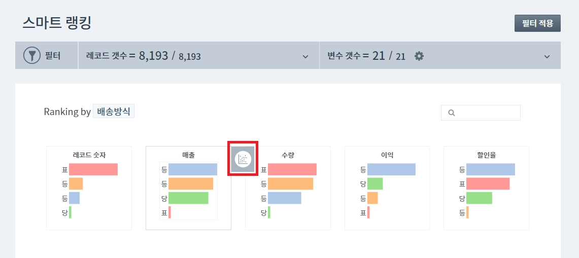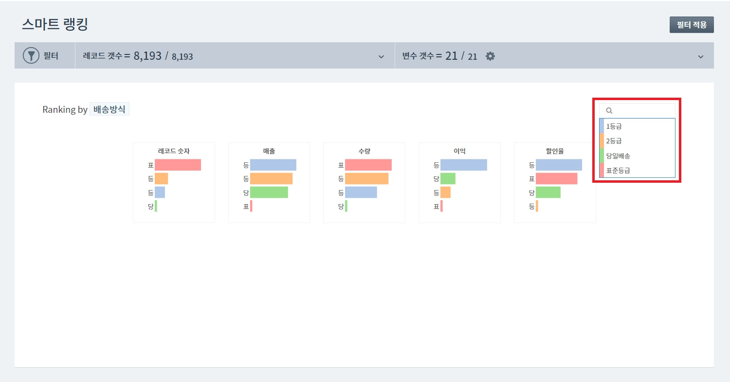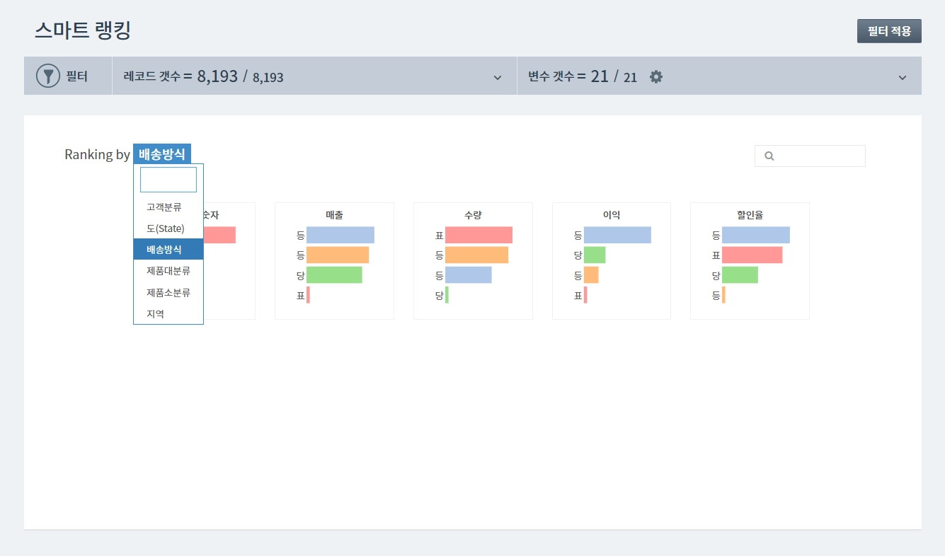 스마트 랭킹은 하나의 범주를 구성하는 개별 변수, 혹은 집단간의 상대적 차이를 한눈에 비교하기 위한 기능입니다.