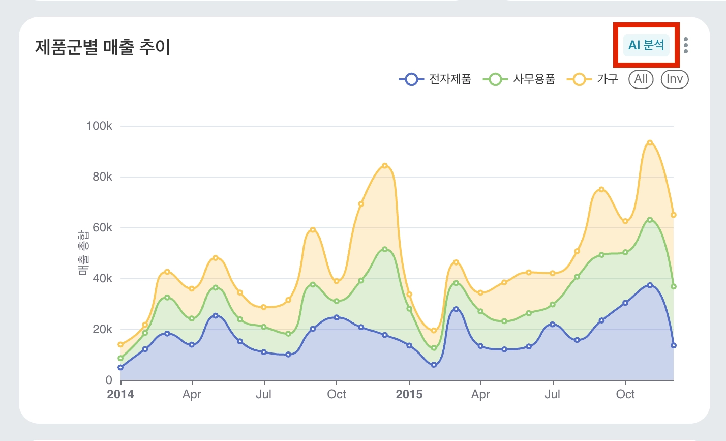 AI 분석 버튼을 클릭하면 해당 차트를 생성하는데 사용한 데이터를 기반으로 하는 분석 전용 페이지로 이동합니다.