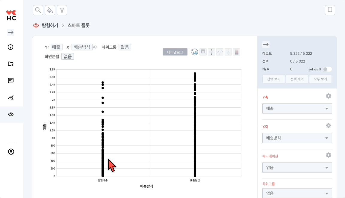 탐험하기의 ‘스마트 서치’ 메뉴에서 HTML, 테이블 형식으로 내보내기