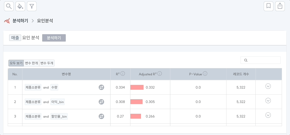 우측 상단의 입력창은 변수에 대한 분석결과를 빠르게 알아볼 수 있도록 도와주는 검색 기능입니다.