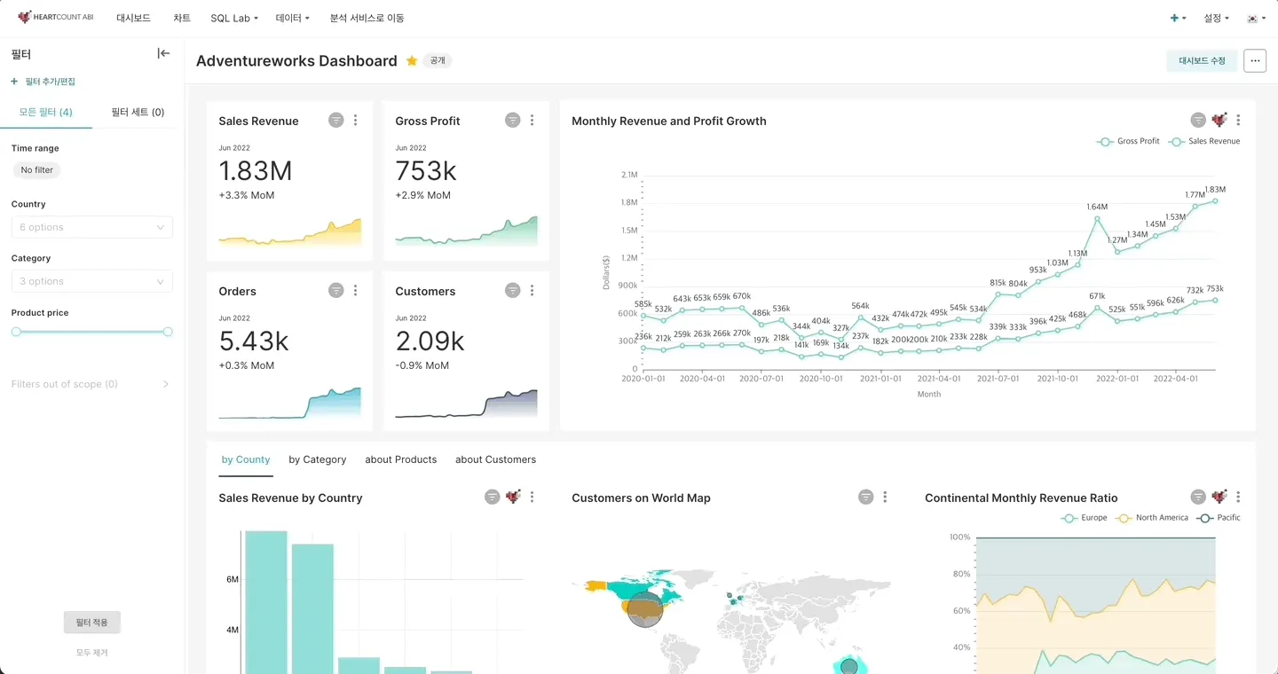 오늘은 하트카운트의 기능 중 하나인 대시보드 기능(BI)에 대해 알아보겠습니다.