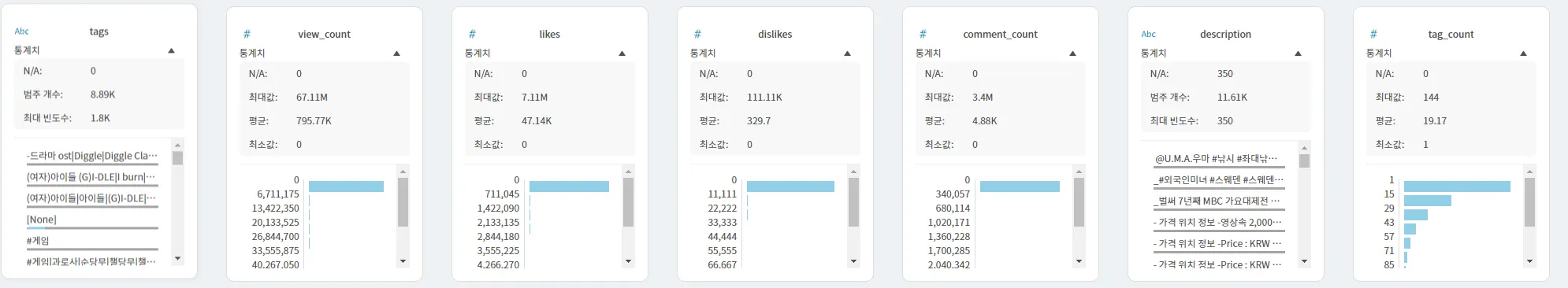 view_count를 중점적으로 탐색하고, 나머지 항목들은 간단하게 살펴보겠습니다.