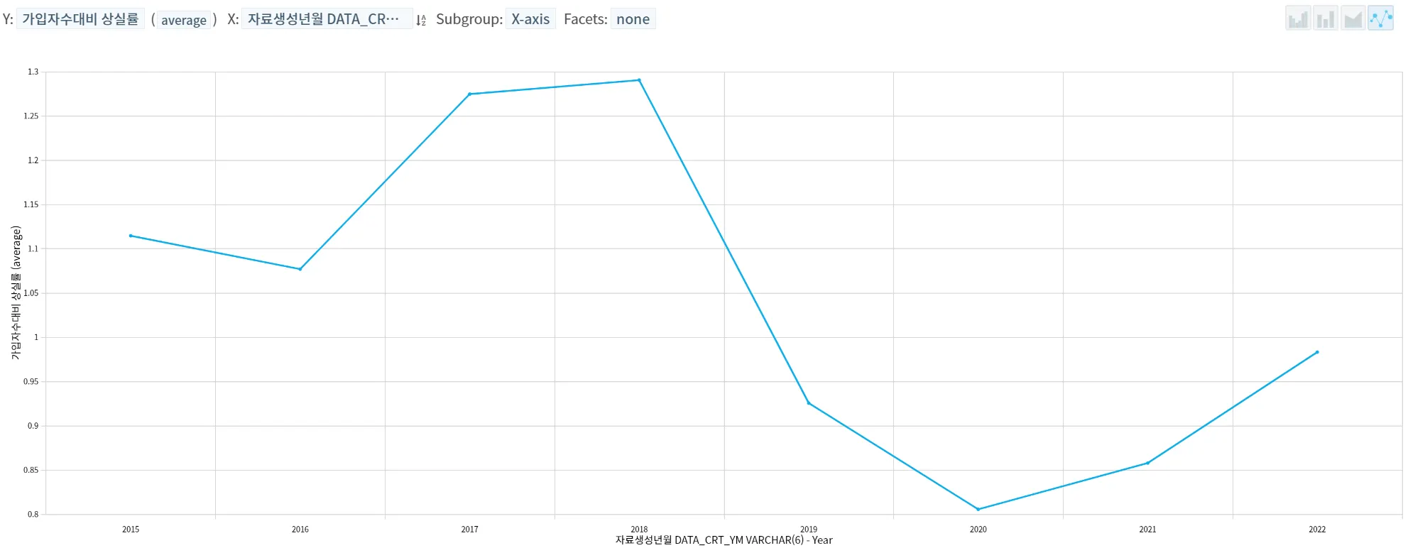 맨 처음 그래프에서 상실률은 업계 전반적으로 S곡선을 그리며 우하향하고 있습니다. 싸이클을 타고 2022년에는 높아지는 상실률, 다시말해 퇴직률을 보이고 있습니다. 위 3번에서 취득률은 줄어드는데 상실이 크게 상승하고 있는 것을 보면 타업종으로 인력 이탈이 심한 것으로 보입니다.