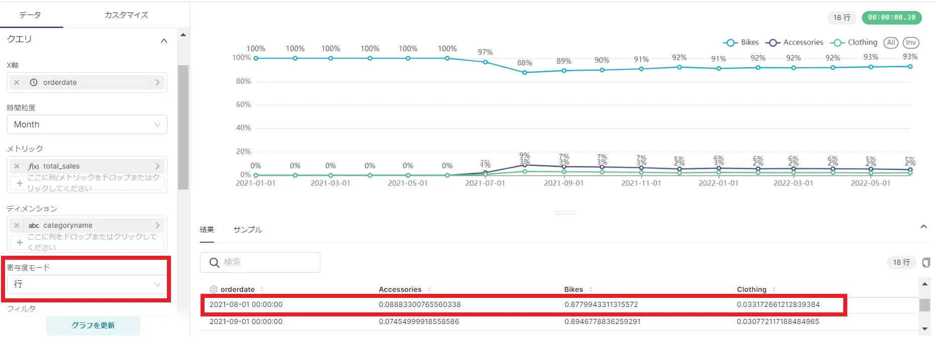 1. 寄与度モードは、メトリックを比率で表示する方式です。