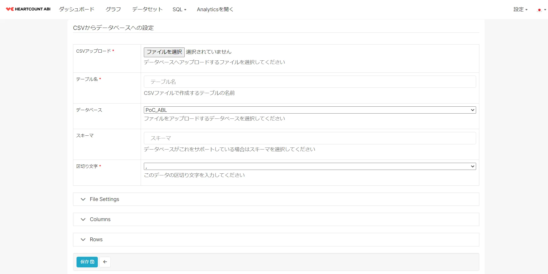 データベースの設定後、データベースにアップロードするファイルを選択します。