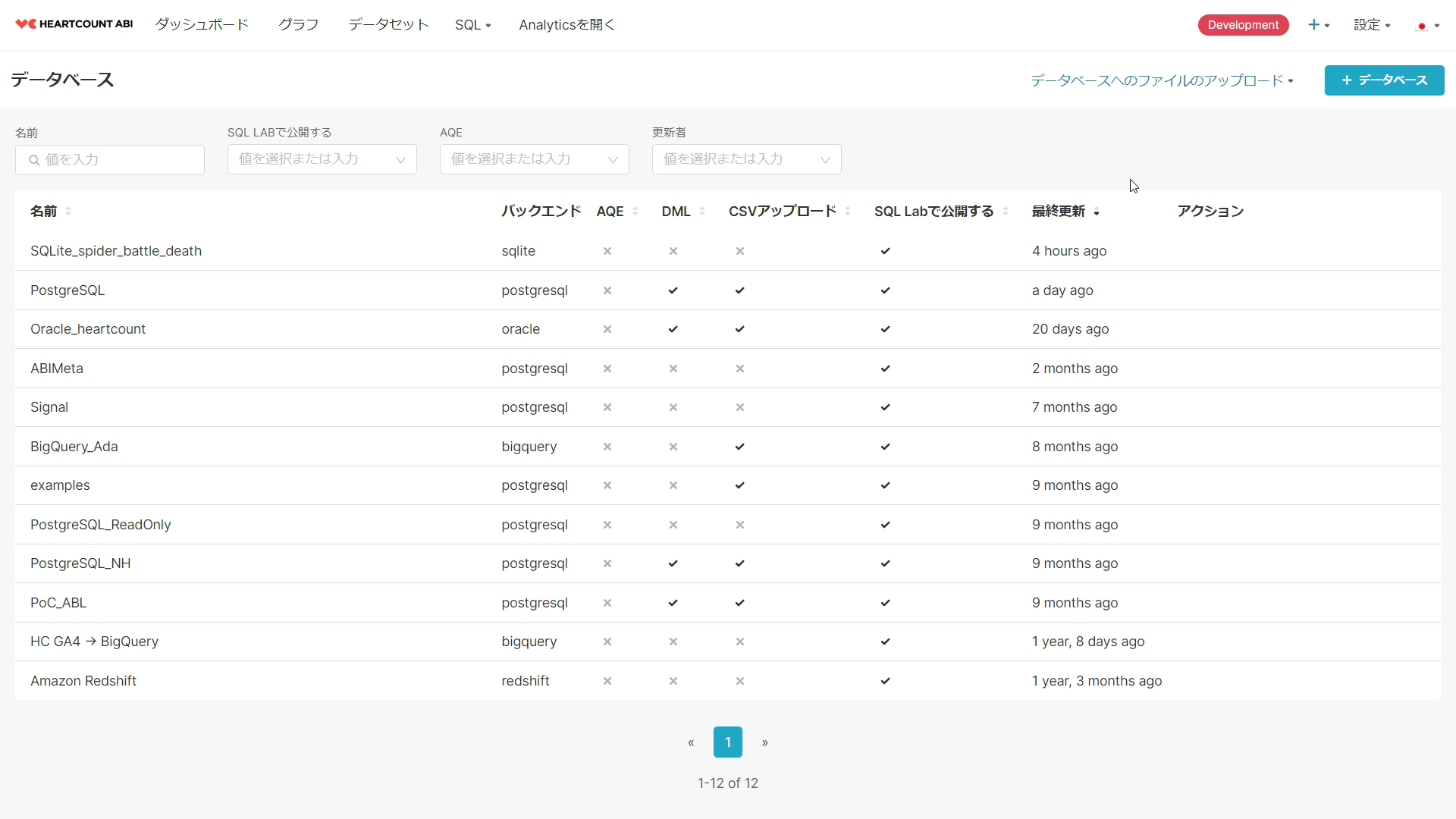 設定したデータベースの [CSV アップロード] 項目がチェックされていることを確認します。