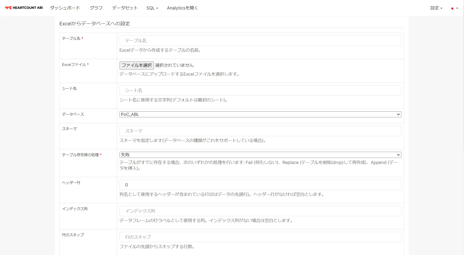 ファイルをアップロードするためには、データベースに接続して、データアップロード機能を有効にする必要があります。