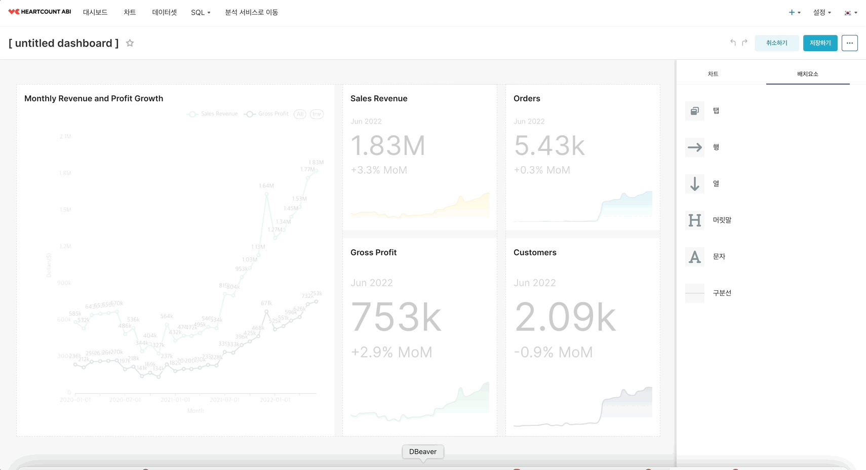 이때 대시보드 그리드에 맞게 차트 크기를 조정하면, 차트 크기가 변경됩니다.