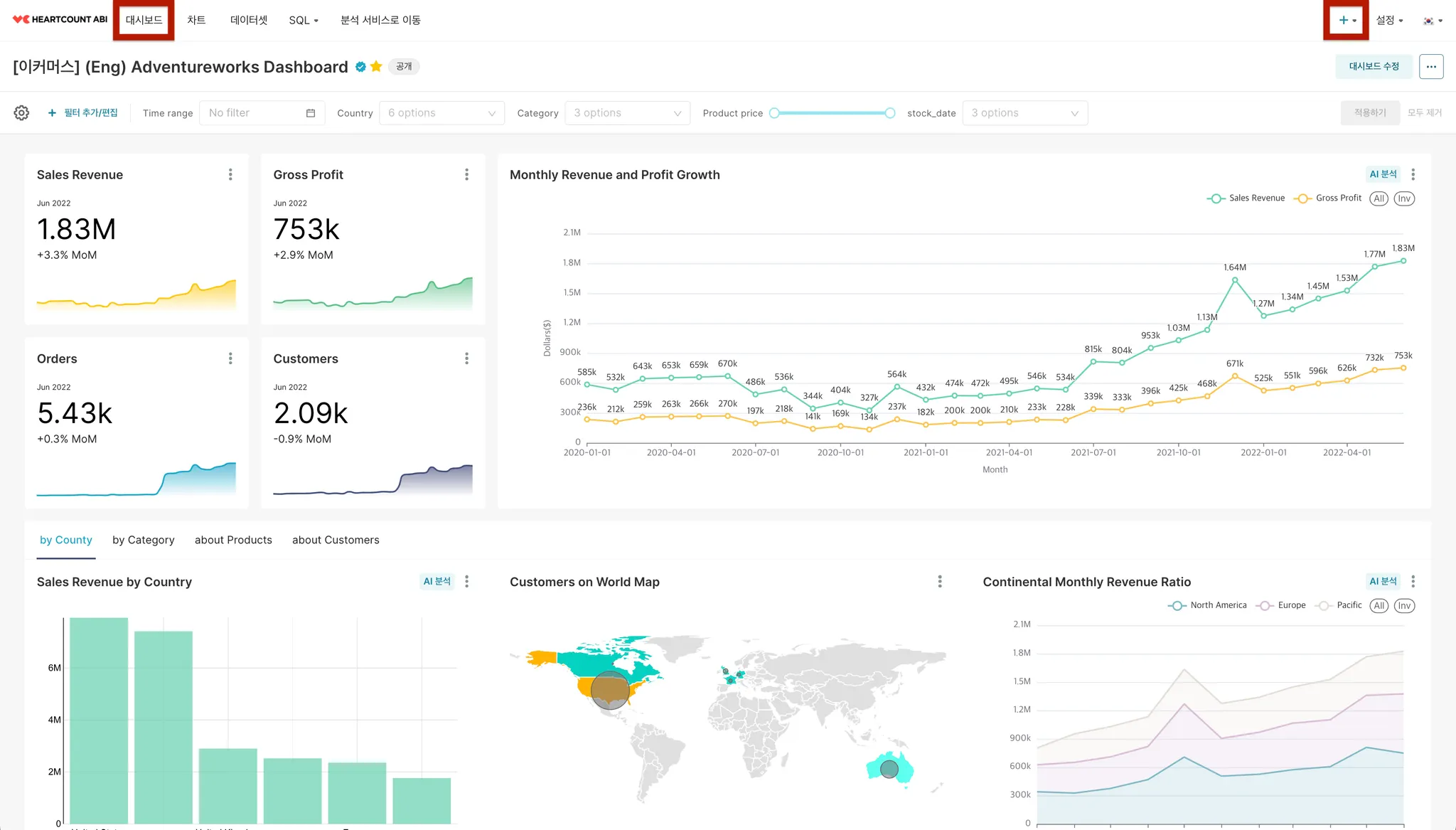 해당 대시보드 화면에서 우측 상단의 대시보드 수정 버튼을 클릭합니다.
