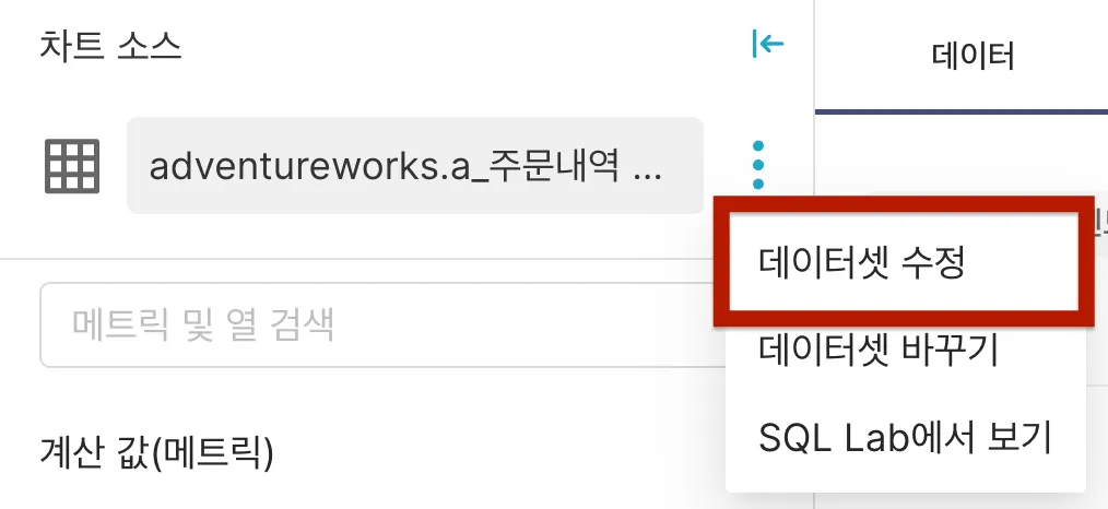 차트 소유자 권한을 가지고 있더라도, 데이터셋 권한이 없으면 차트 편집 시 에러가 발생합니다.