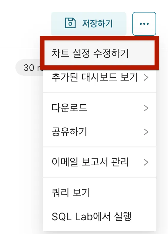 차트 접근이 가능하다면, 차트 편집창에서 우측 상단의 …를 클릭합니다.