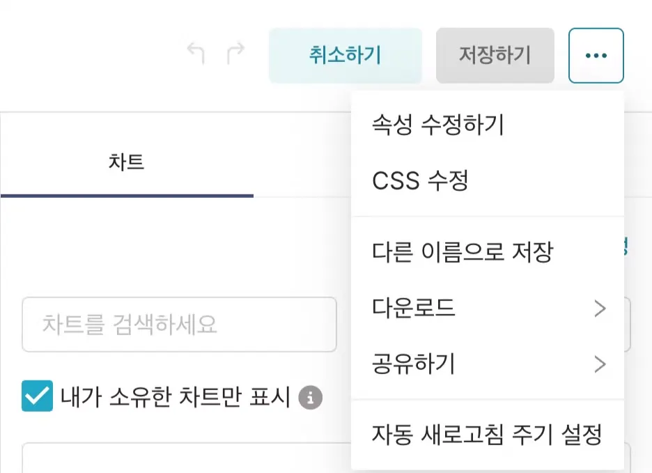 차트 편집도 대시보드와 마찬가지로 소유자에 명시되어있는 사용자에 한해 차트 편집이 가능합니다.