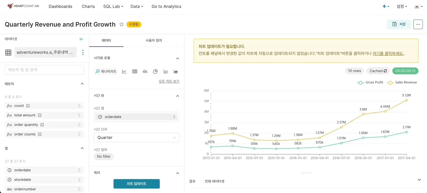 영역 차트나 누적 차트로 변경할 수 있는 기능이 추가되어 있습니다.