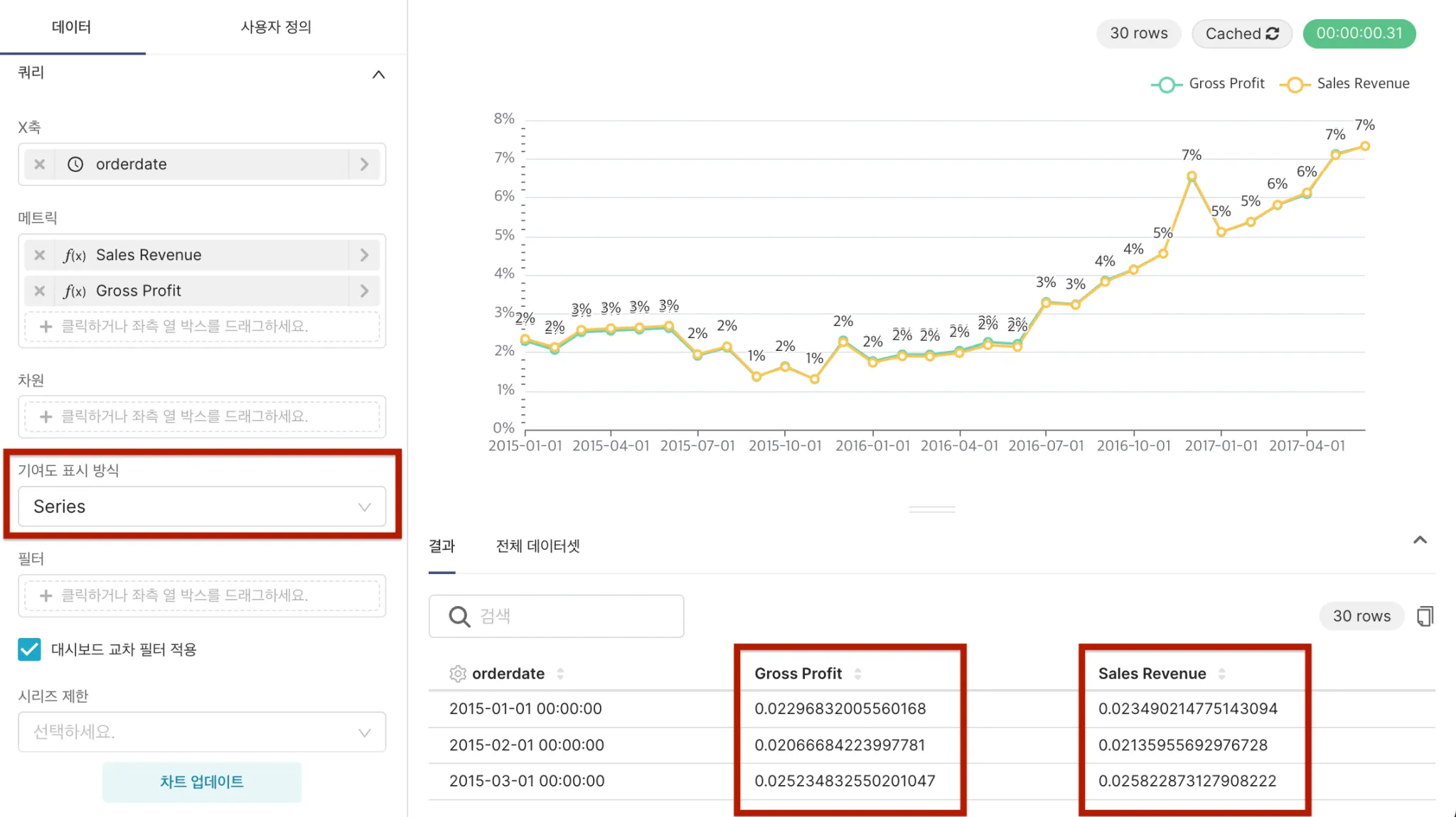 2. 시리즈 제한에서는 차트의 X축 시리즈 수를 제한할 수 있습니다.