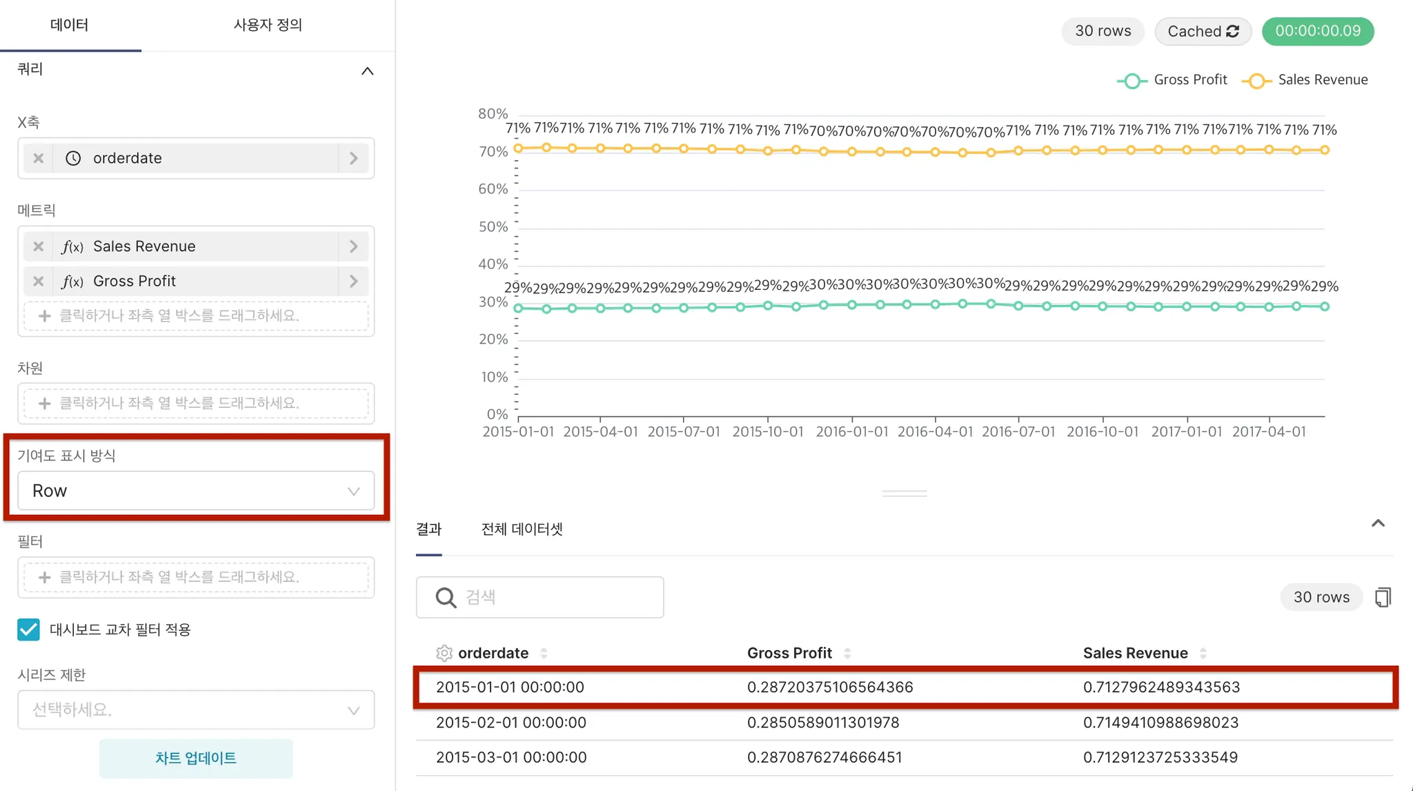 3. 행 제한 에서는 원본 데이터셋에서 차트에 사용할 데이터의 행 수를 제한할 수 있습니다.