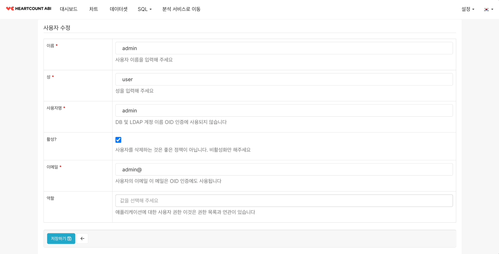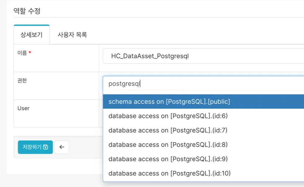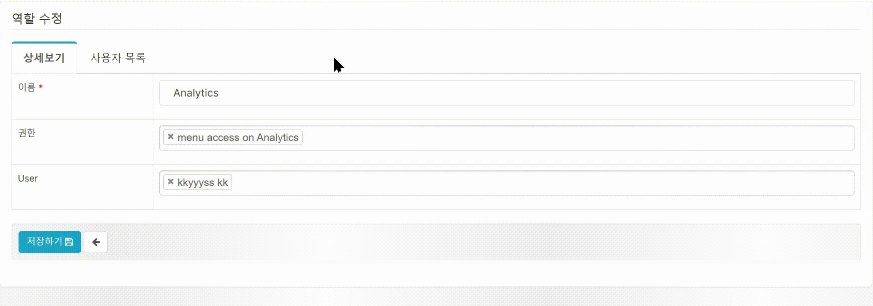 역할을 부여할 사용자를 지정한 후, 저장하기 버튼을 클릭합니다.