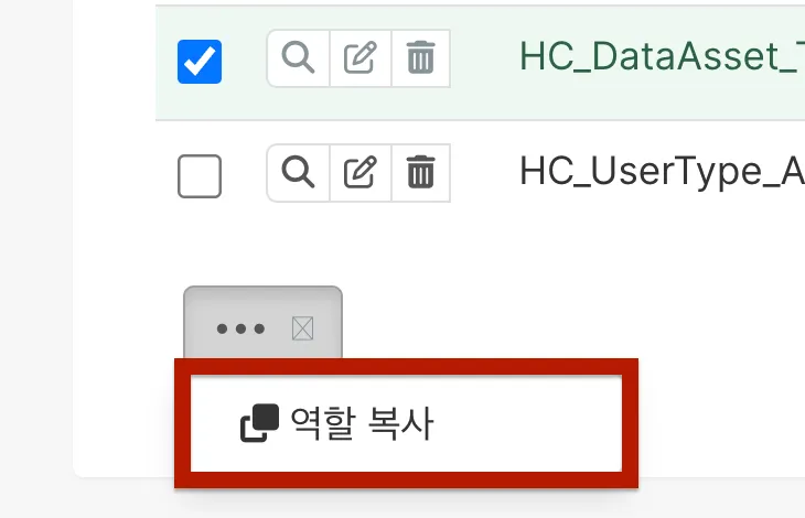 기본 제공되는 HC_DataAsset_* 권한을 복사합니다.