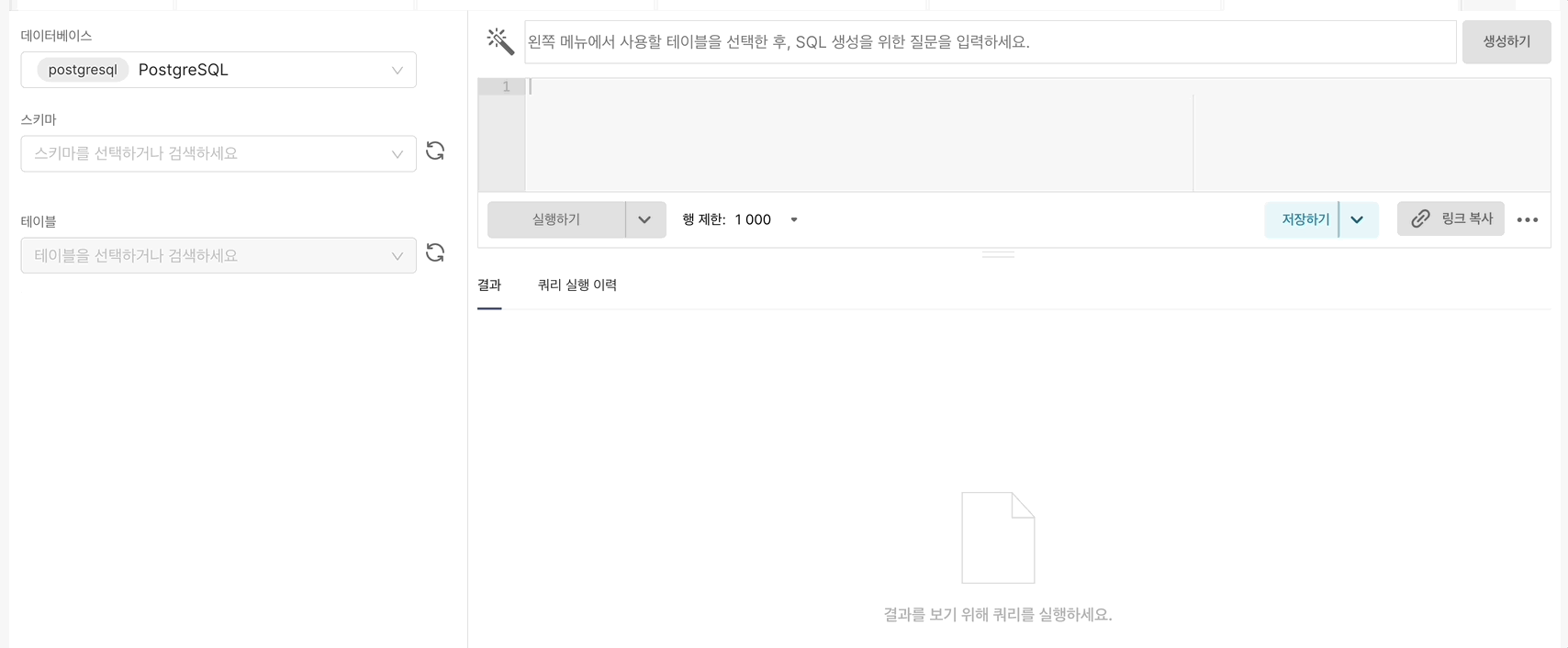 좌측 메뉴에서 조회하고자하는 데이터베이스와 스키마를 선택합니다.