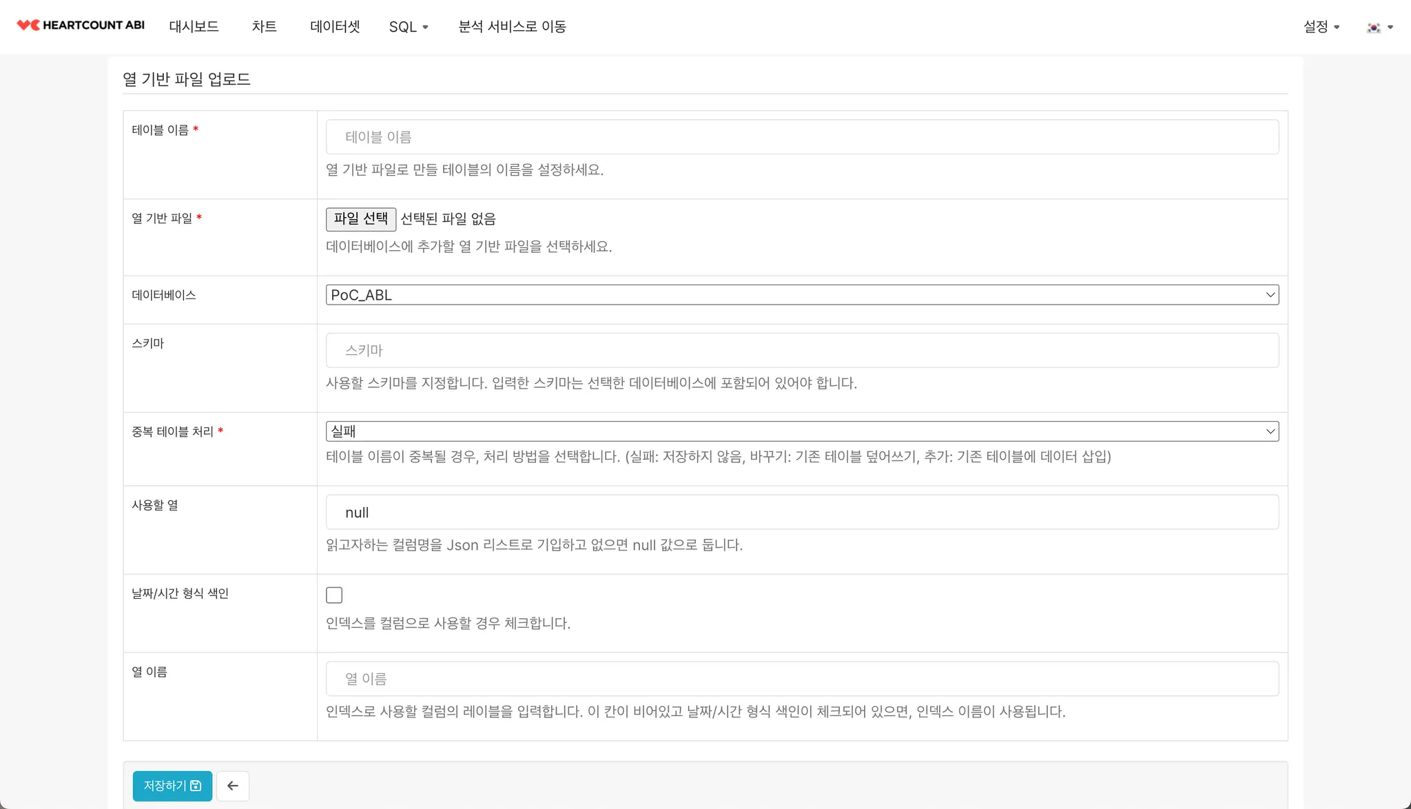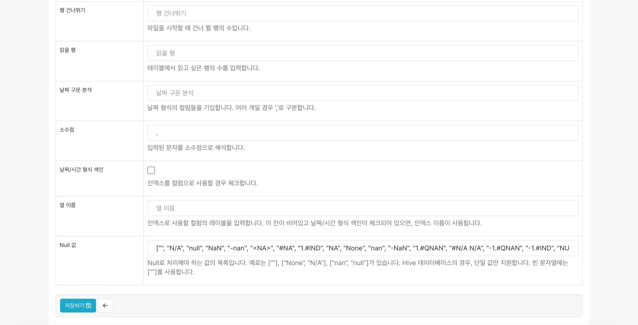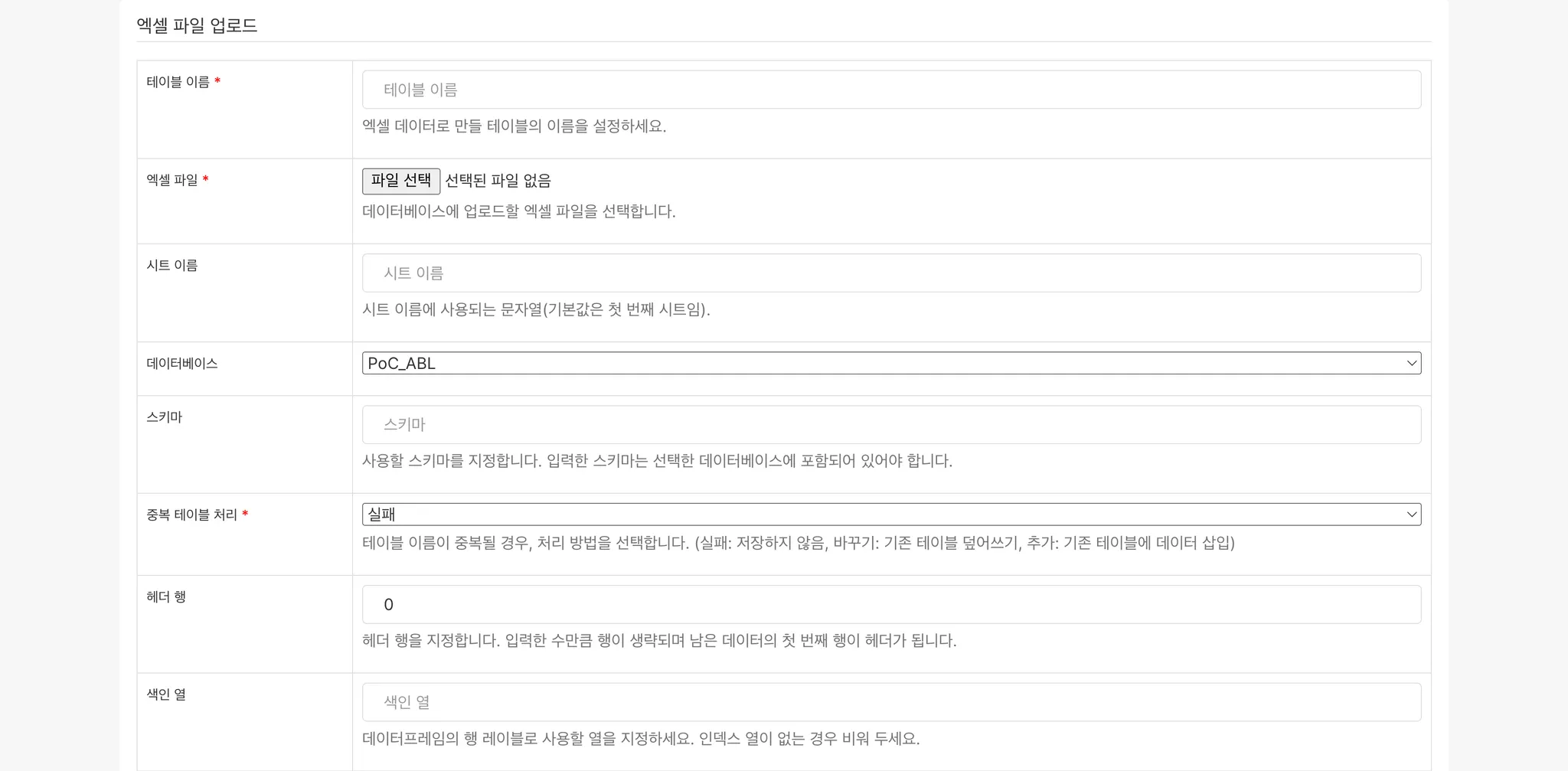 스키마를 입력하지 않으면, 데이터베이스 내 모든 스키마에 대하여 파일 업로드가 허용됩니다.
