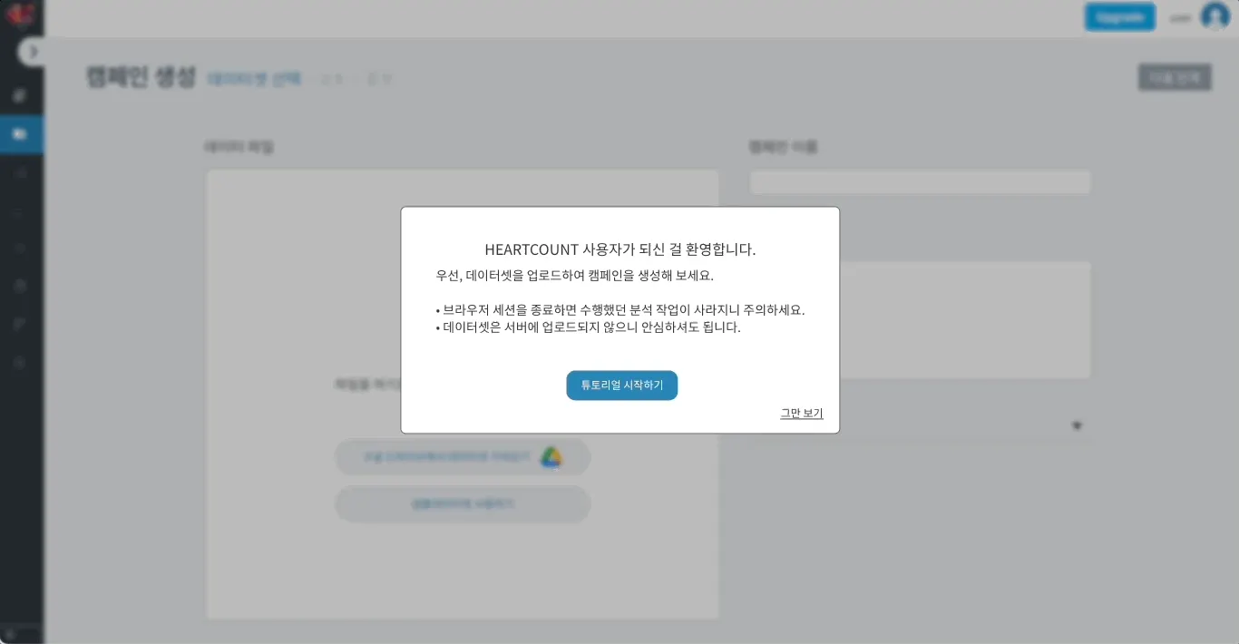 | 캠페인 저장 | 크레딧 개수(3개)내에서 사용 가능 | 하트카운트 프리미엄(유료 플랜) 업그레이드시 사용 가능 |