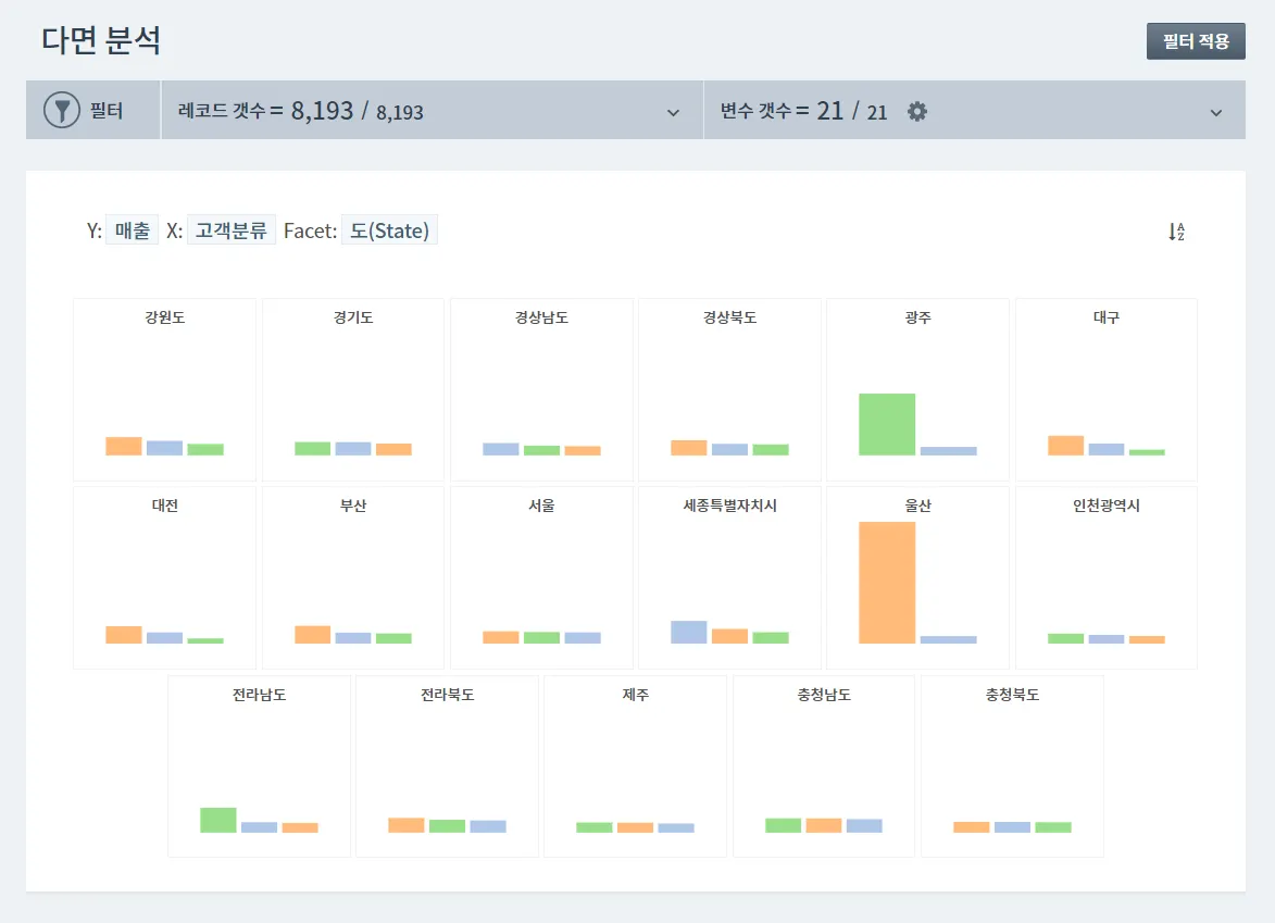 X๋ณ Y๋ฅผ Facet์ผ๋ก ๊ตฌ๋ถํ์ฌ ์ฐจํธ๋ก ๋ํ๋