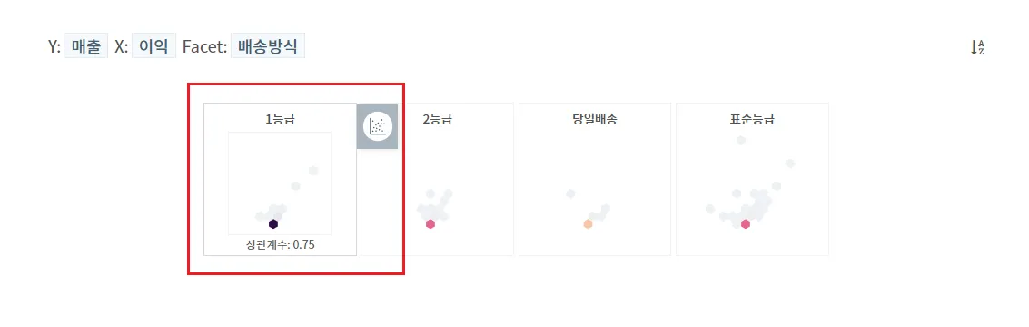 ํ๋ฉด ์ข์ธก ์๋จ์ Y, X, Facet ํญ๋ชฉ์ ํด๋ฆญํ๋ฉด ์ํ๋ ๋ณ์๋ฅผ ์ ํํ ์ ์์ต๋๋ค.