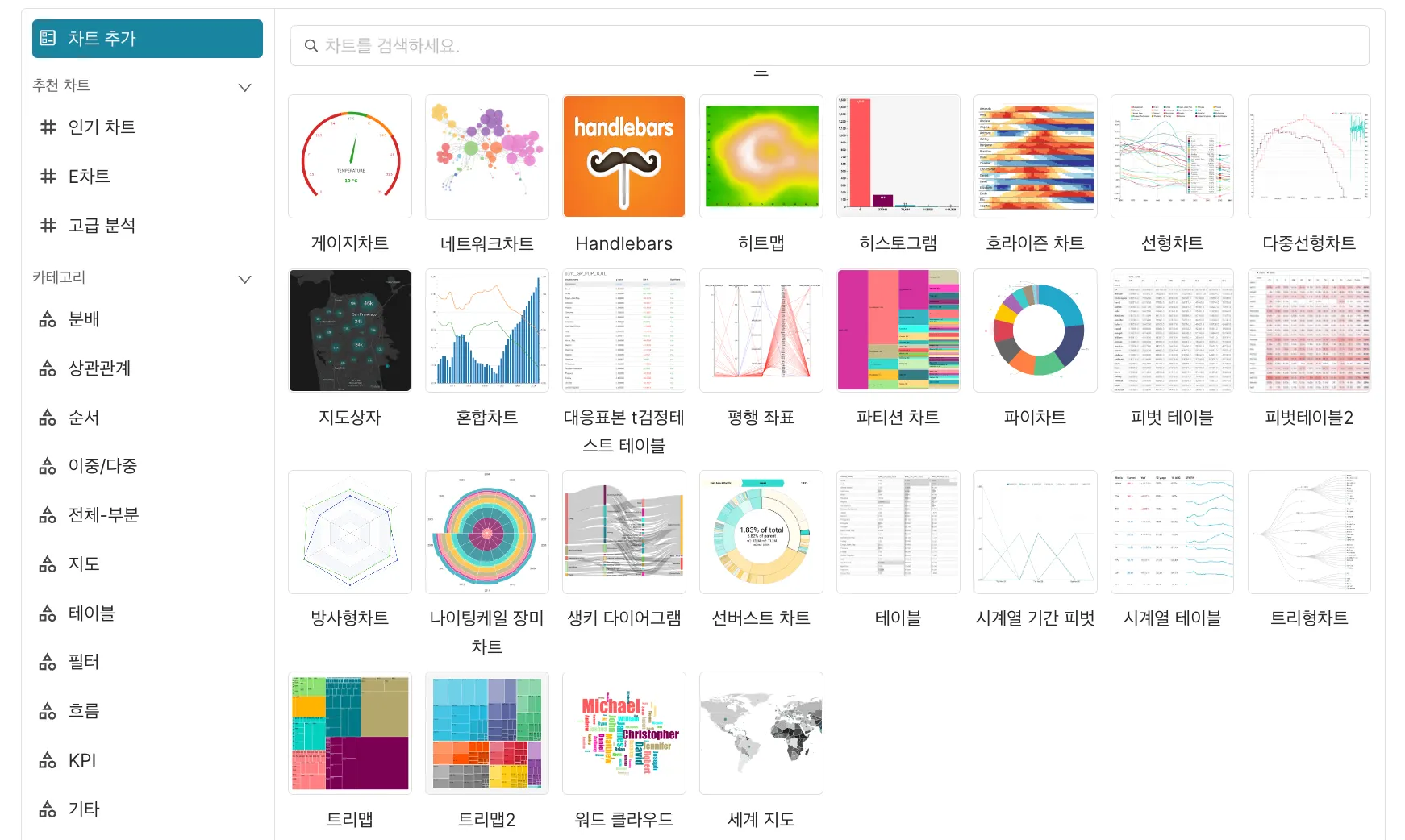 차트 추가 탭을 누르면 모든 차트를 확인할 수 있습니다.
