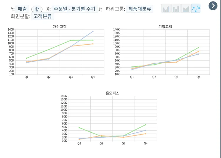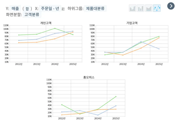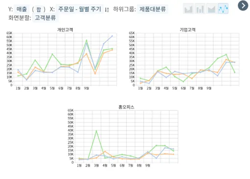 해당 부분은 위에 수익성과 매출군 고객군 지역별 년도