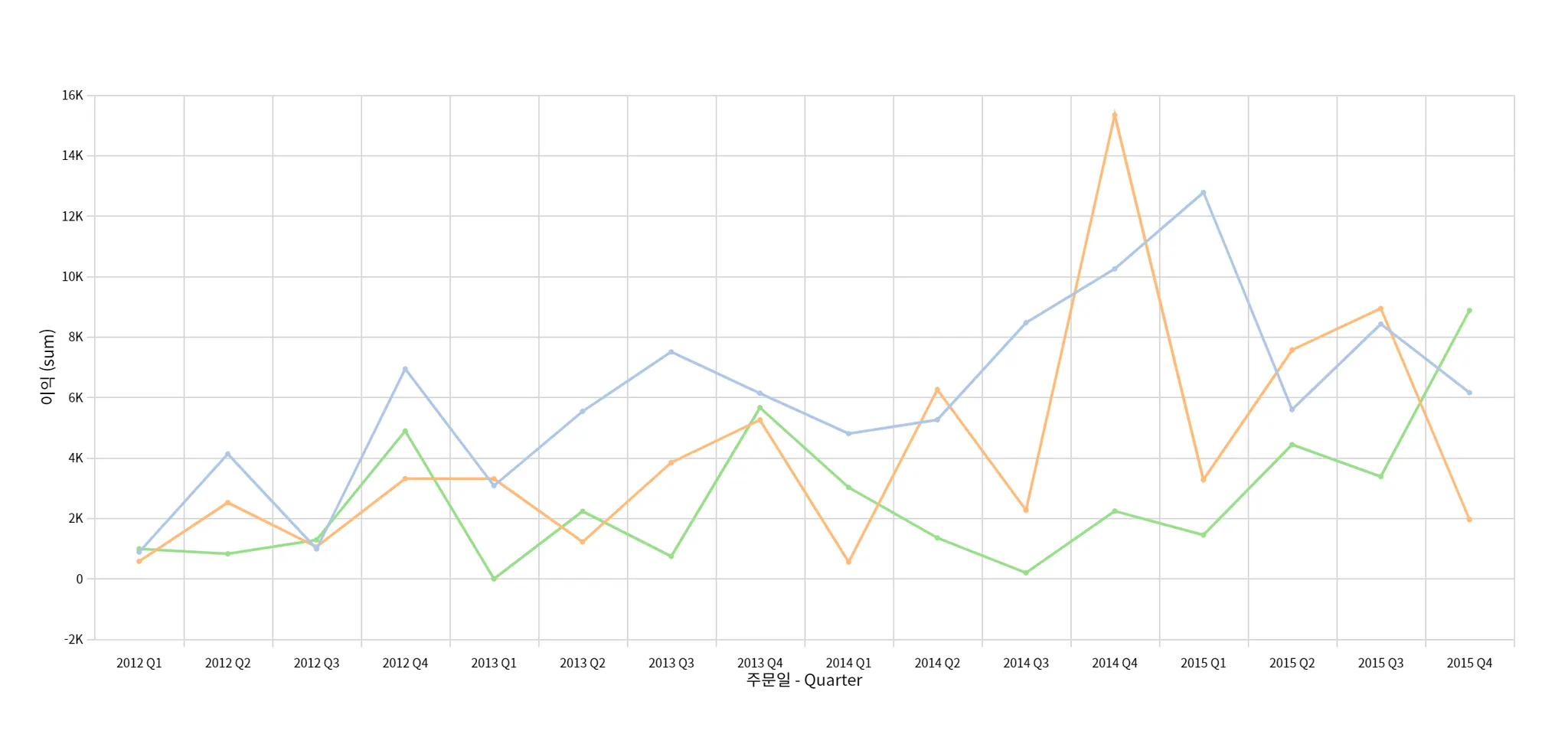 주문일 분기별 총 이익액