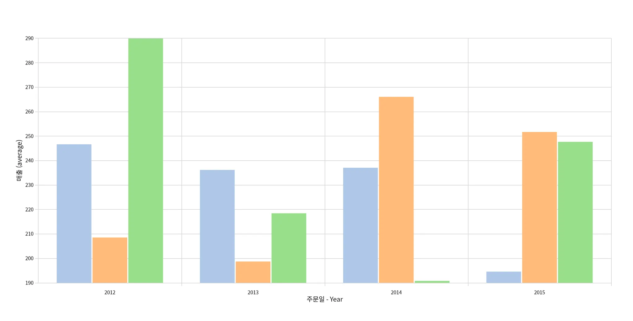 전반적으로 4분기에 연도별 매출액이 제일 높고 1~2분기에 낮은 경향을 보임