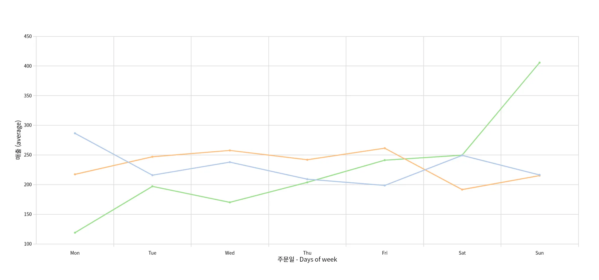 요일별 총 매출액