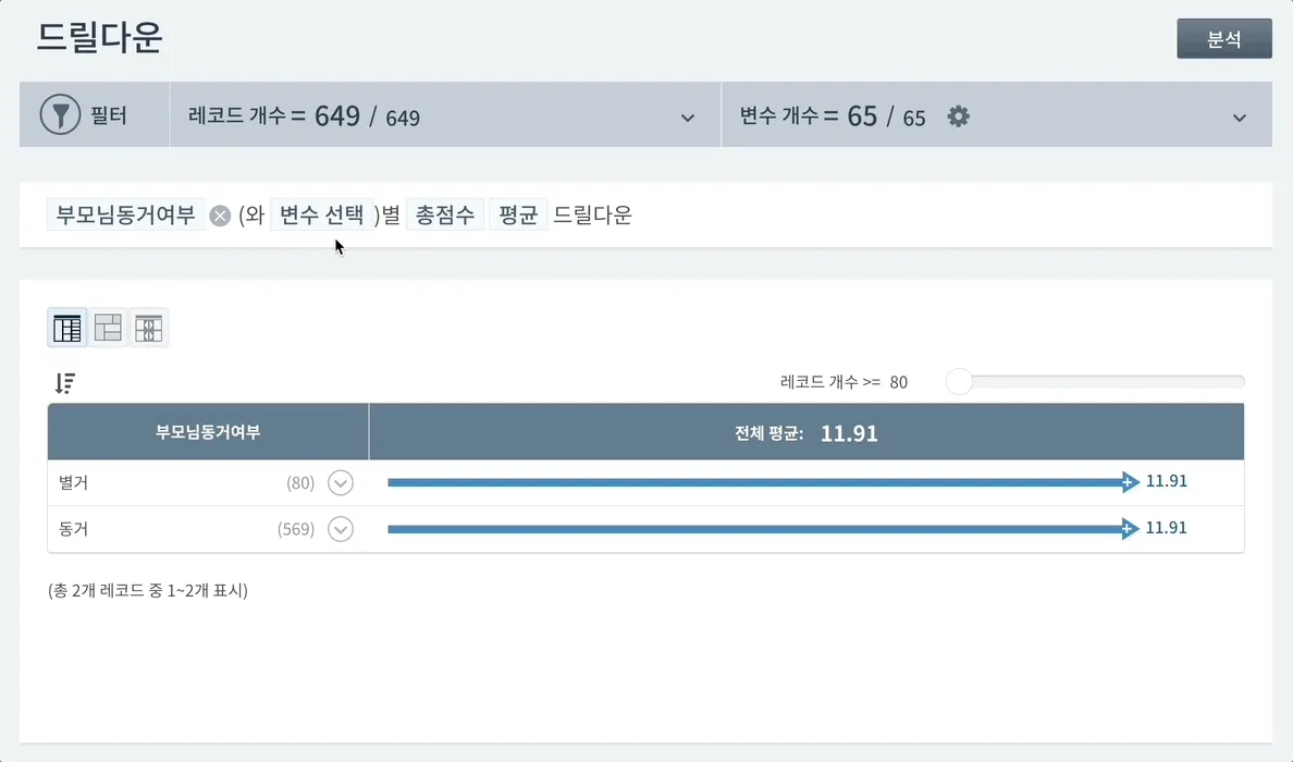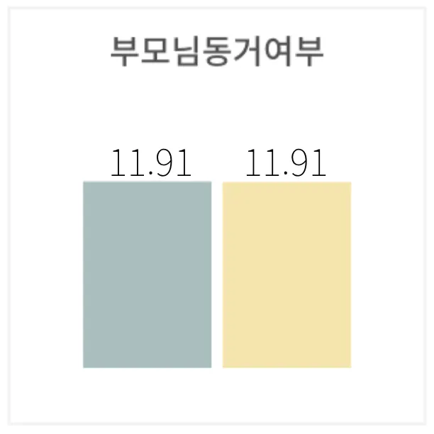 반면 평균적인 차이가 전혀 없는 것으로 보이는 변수도 있었는데, 바로 부모의 동거여부였다.