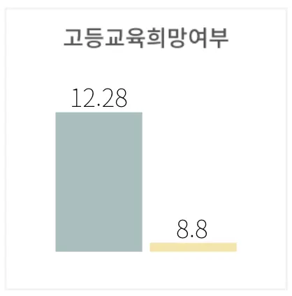 고등교육 희망여부는 무엇을 의미할까? 아무래도 학생 개인의 미래를 위한 본인의 의지와 밀접한 연관이 있을 것이다.