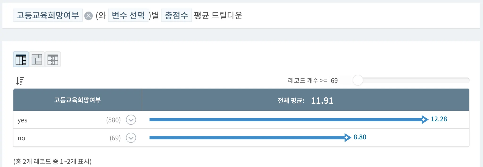 위에서 언급했듯이 고등 교육 희망여부는 대학 진학 희망 여부로 보아도 좋을 것이다.