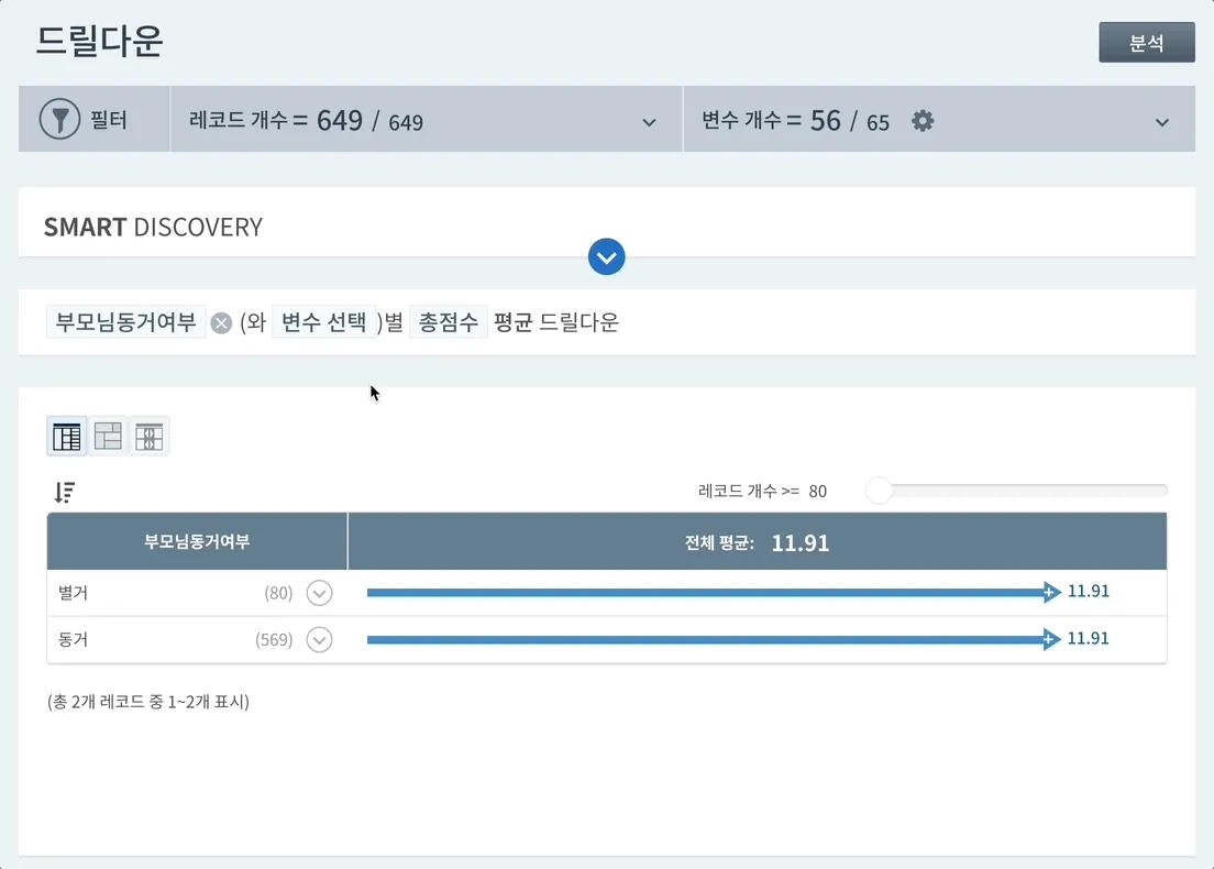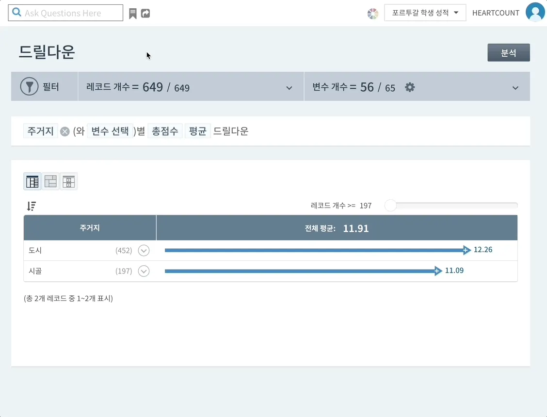 먼저 여기에서는 드릴다운, 비교분석 등의 EDA 기술을 적용해 보자.