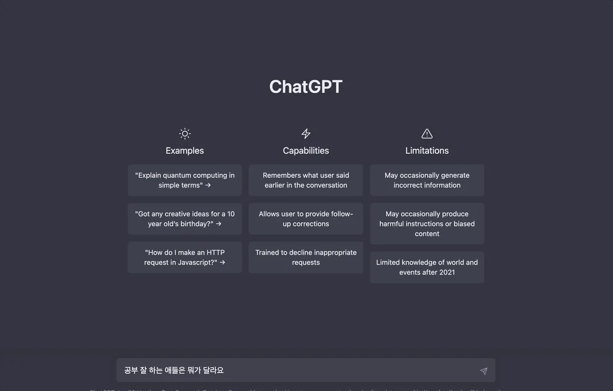 한글로 물어보았는데 영어로 대답해주는 인터내셔널한 ChatGPT