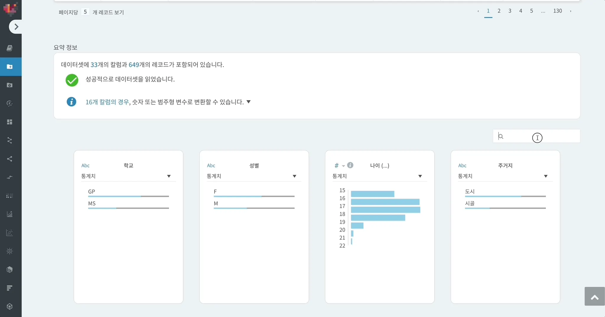 데이터가 33개의 칼럼과 649개의 레코드로 이루어져있다는 것은 쉽게 말하자면 33개의 열과 649개의 행이 있다는 말이다.