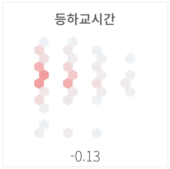 등하교 시간이 길수록 총점수가 낮아지는 약한 음의 상관관계를 보였다.