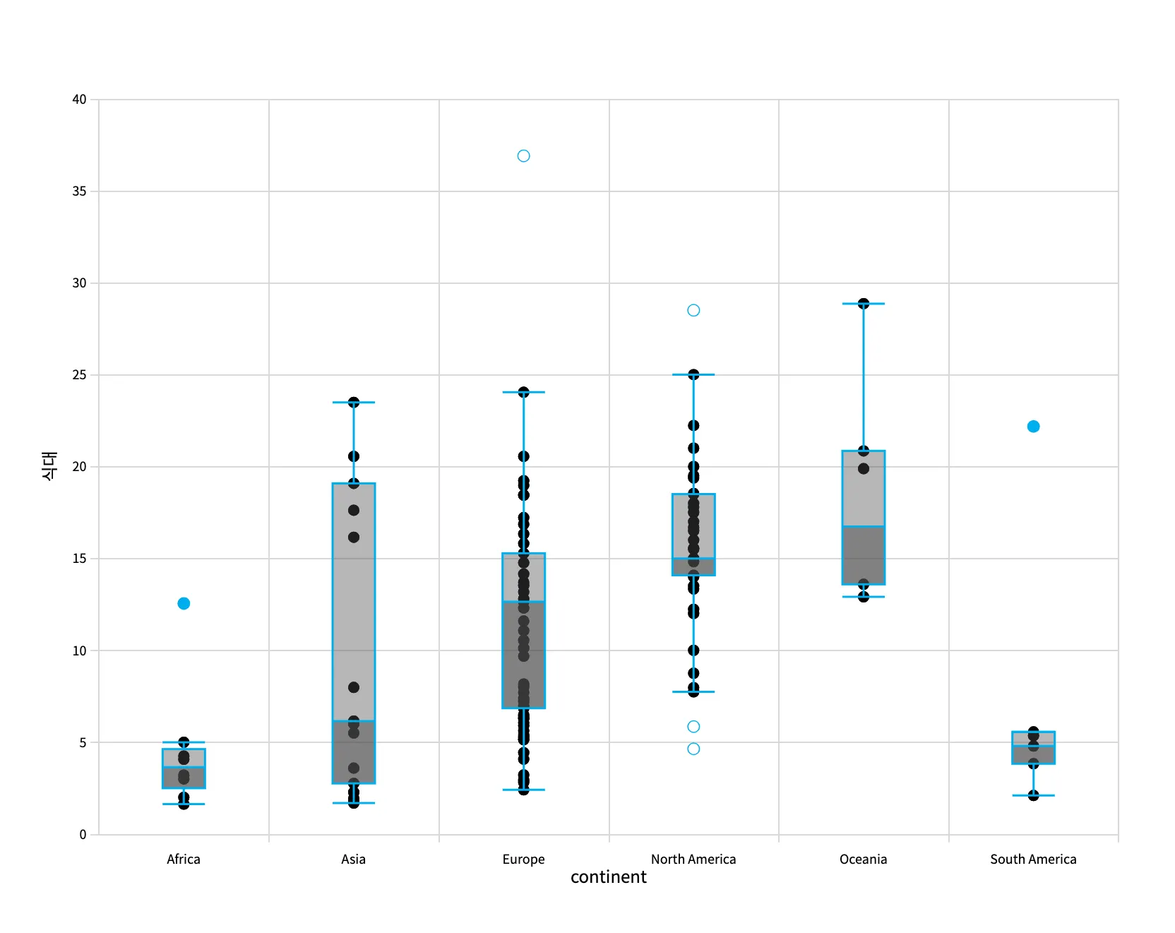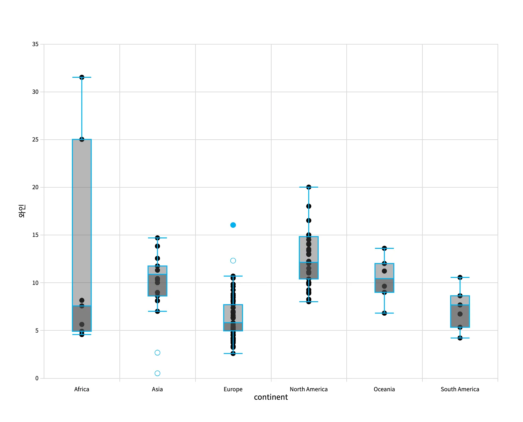 유럽은 편차가 컸고 (스위스 최상단(21.64), 터키 최하단(2.92))