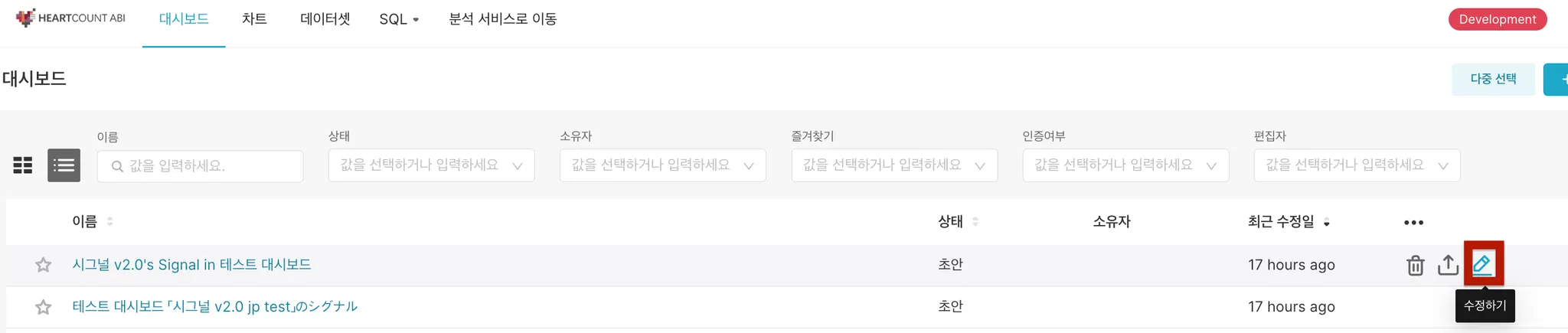 보고서 탭을 클릭하여 나오는 보고서 목록에서 수정하고자 하는 시그널의 수정하기 버튼 클릭