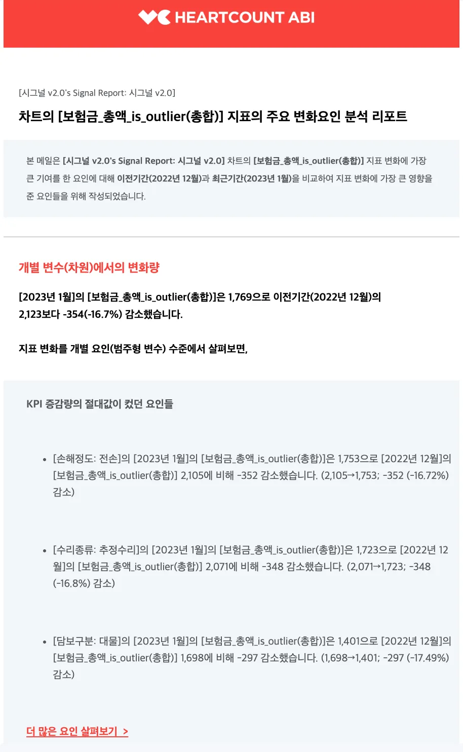 어떤 차트의 KPI에 대한 시그널 분석 결과인지를 요약하여 뉴스레터 상단에 제공합니다.